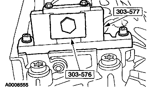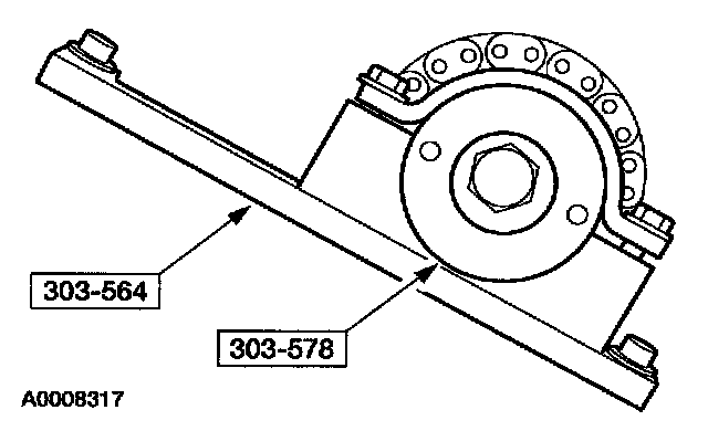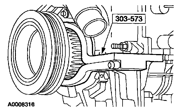 9. NOTE: The special tool must be installed on the damper and should contact the engine block, this positions the engine at Top Dead Center (TDC).