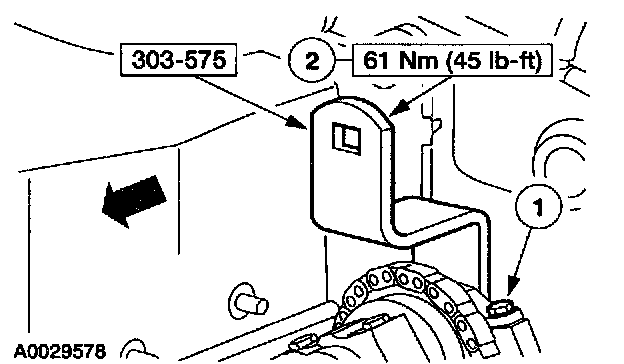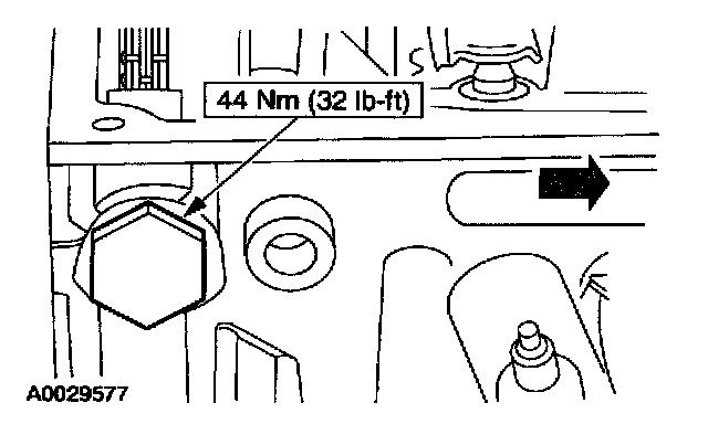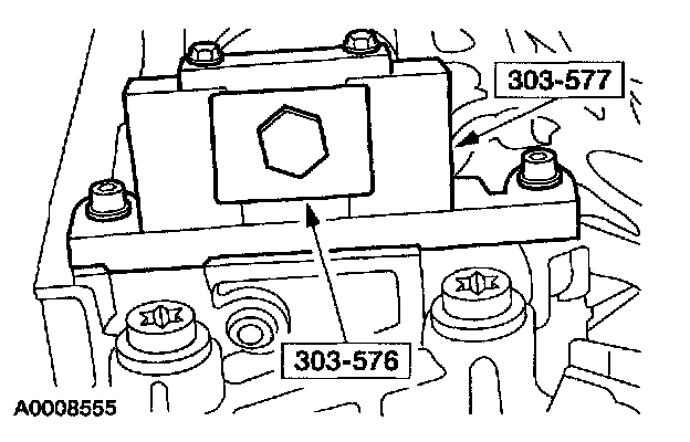 28. Install the special tools on the front of the LH cylinder head and tighten the top two clamp bolts to 10 Nm (89 inch lbs.).