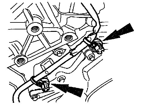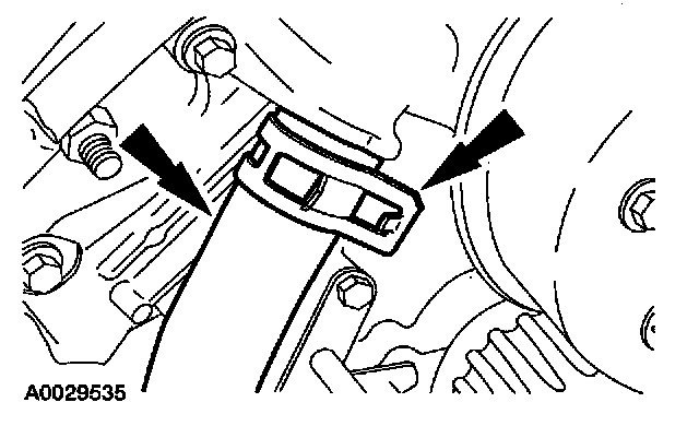 5. On A/C equipped vehicles, install the A/C line bracket and bolt.