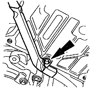 14. On A/C equipped vehicles, remove the A/C line bracket bolt and position the A/C line aside.