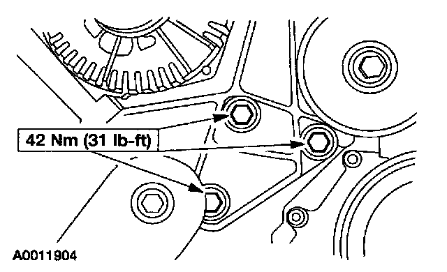 15. Install the accessory bracket bolts.