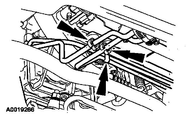 6. Remove the metallic clip. Detach the transmission oil cooler lines.