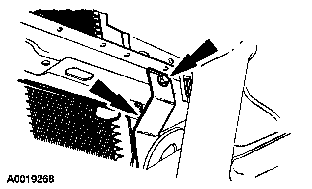 8. Remove the bolt and the A/C condenser core.