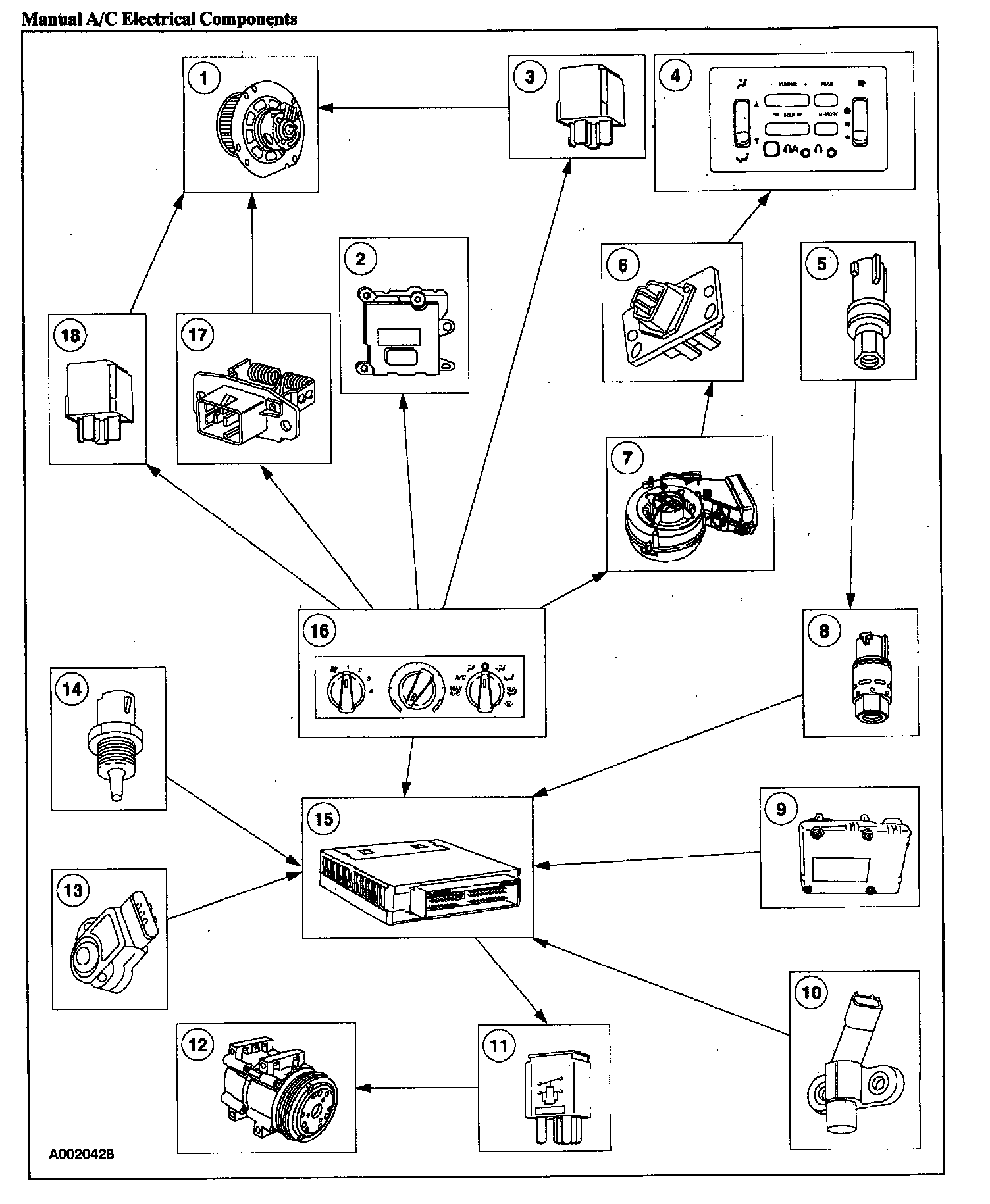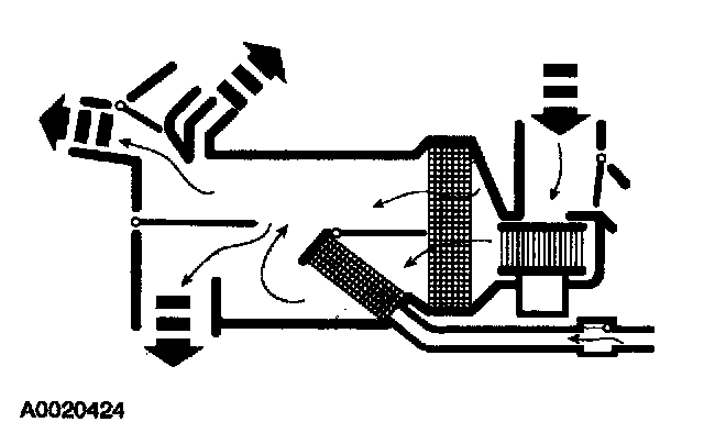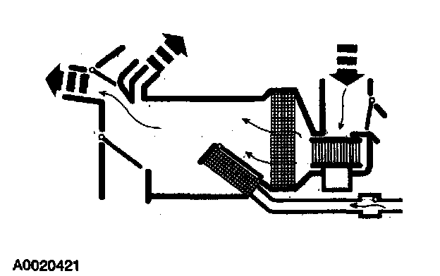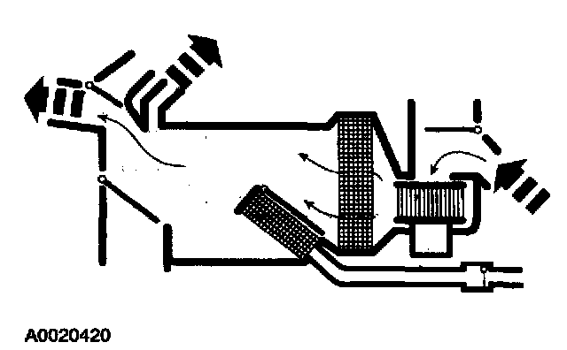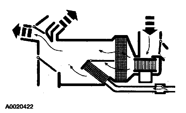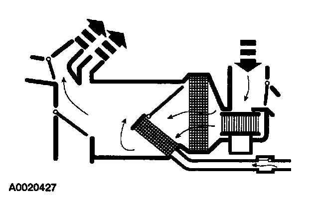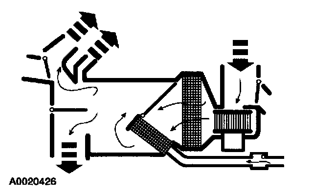 - The air inlet door vacuum control motor is at full vacuum, closing off outside air and admitting only recirculated air.