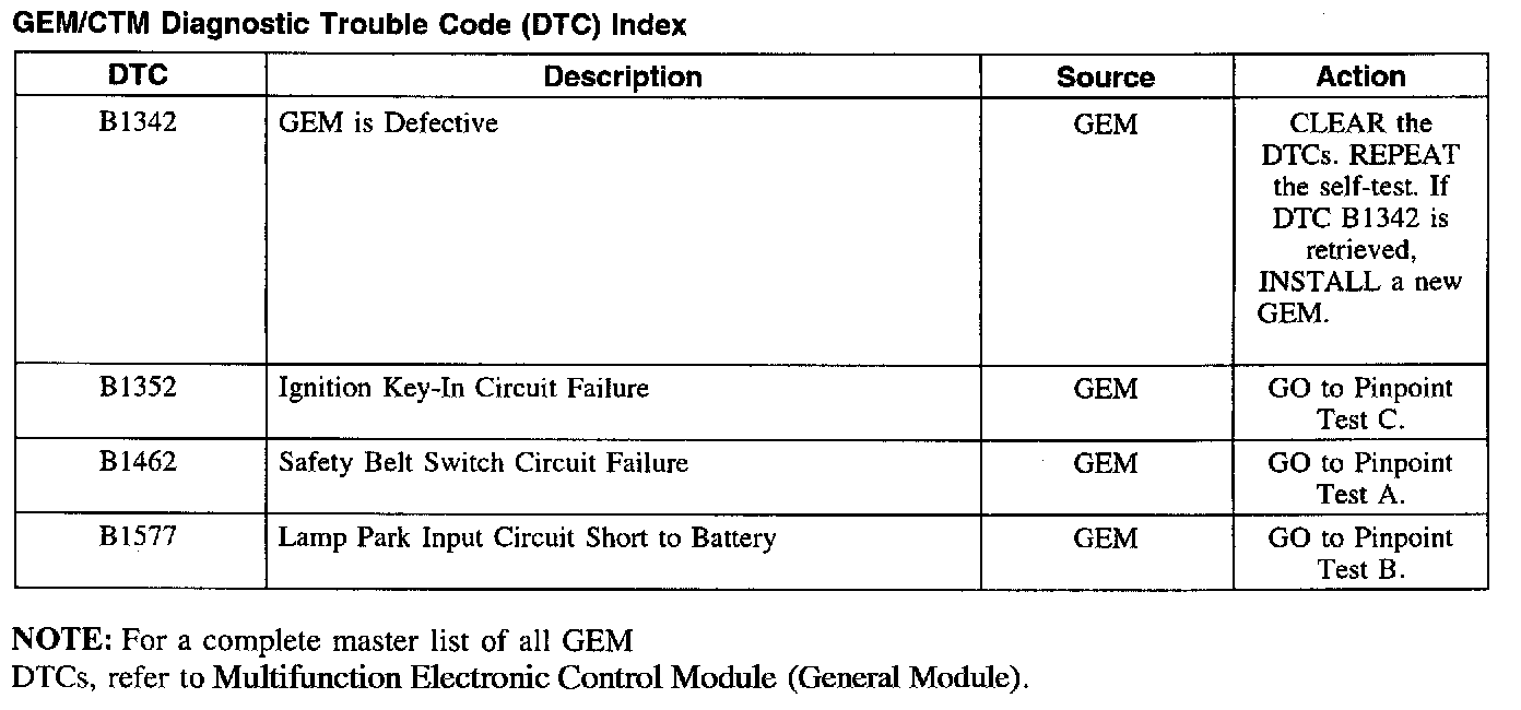 DTC Index B1342 - B1577: