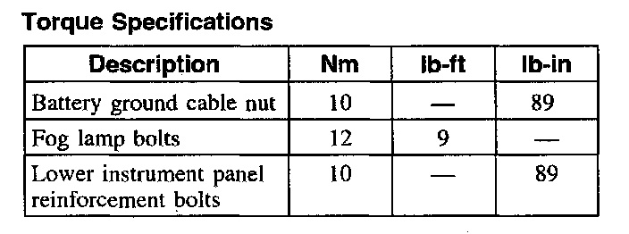 Torque Specifications: