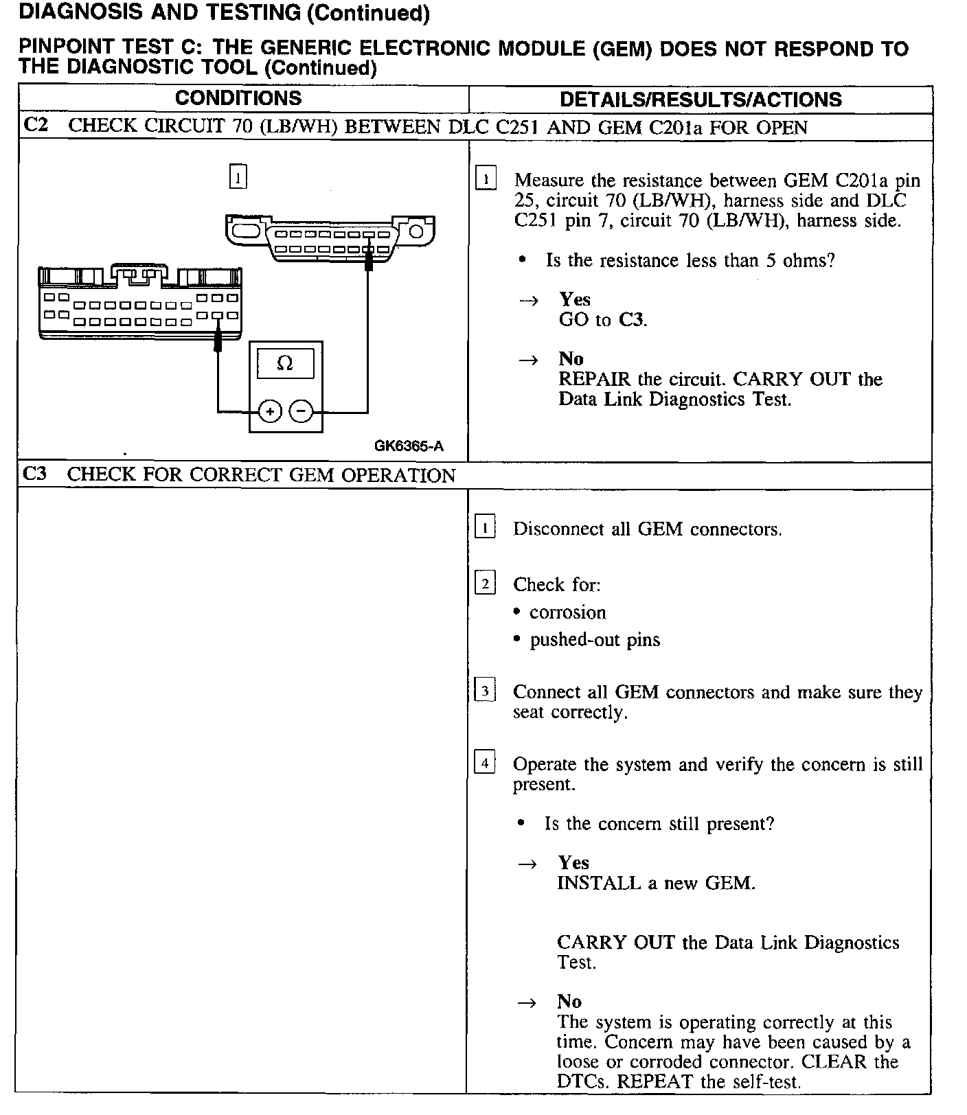 Test C: GEM Does Not Respond to the Diagnostic Tool