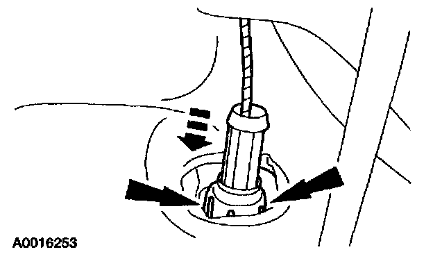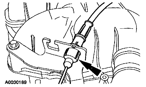 2. Collapse the clips at the dash panel and push the cable through the dash panel into the engine compartment.