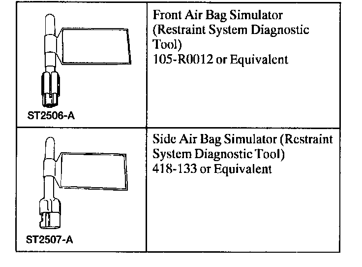 ^ NEVER PROBE THE CONNECTORS ON THE AIR BAG MODULE. DOING SO CAN RESULT IN AIR BAG DEPLOYMENT, WHICH CAN RESULT IN PERSONAL INJURY.