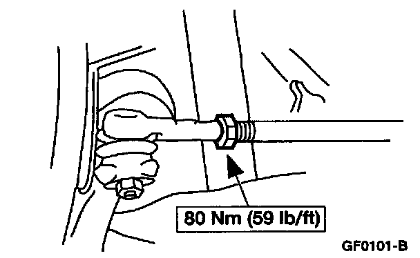 4. NOTE: Do not allow the steering gear bellows to twist when the front wheel spindle tie-rod is rotated.