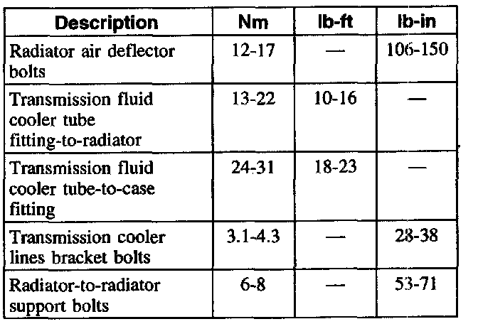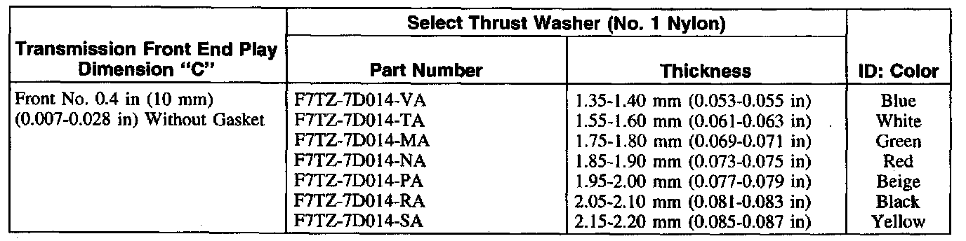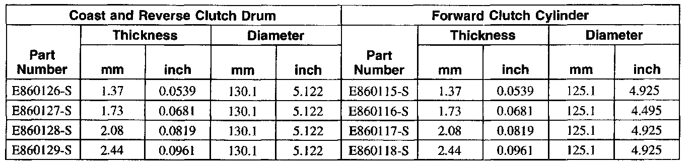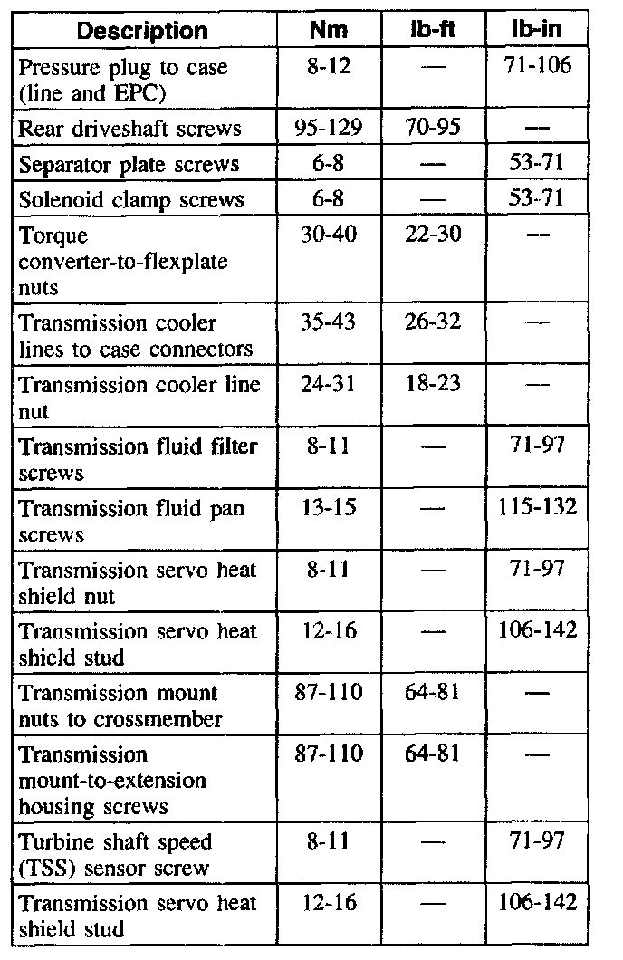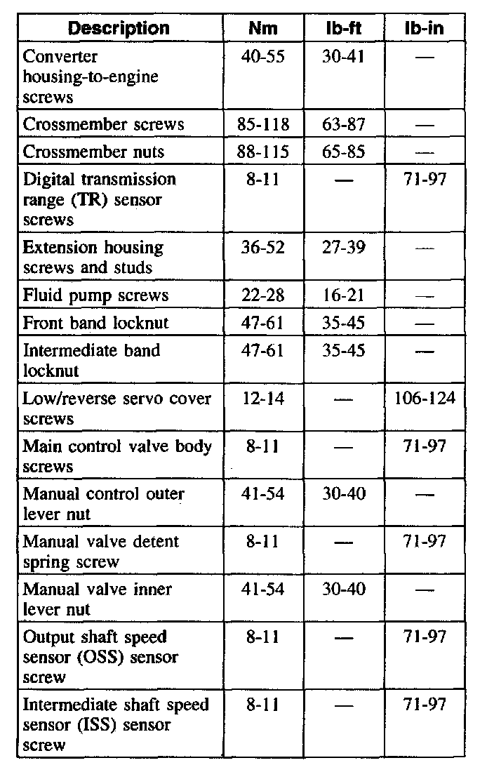 NOTE: Prior to using this chart, you should check the transmission identification tag. Some early built units will use a different specification.