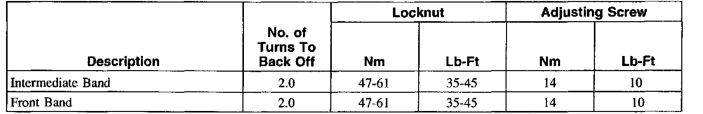 Band Adjustment And Torque Chart