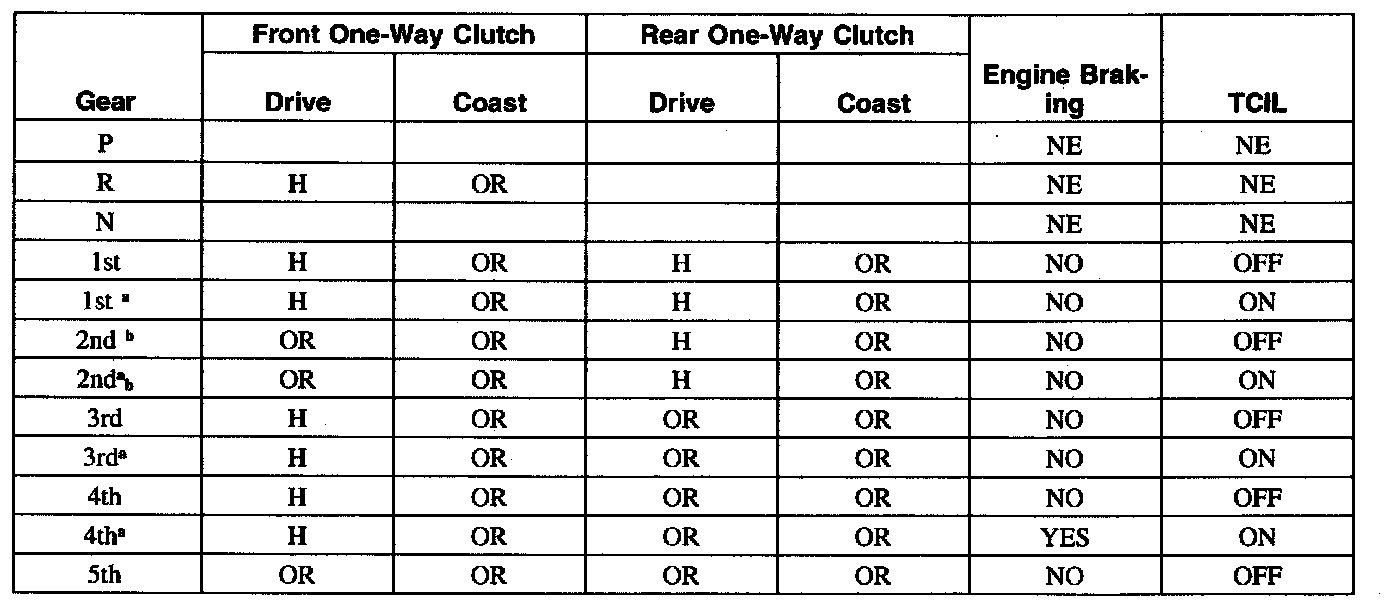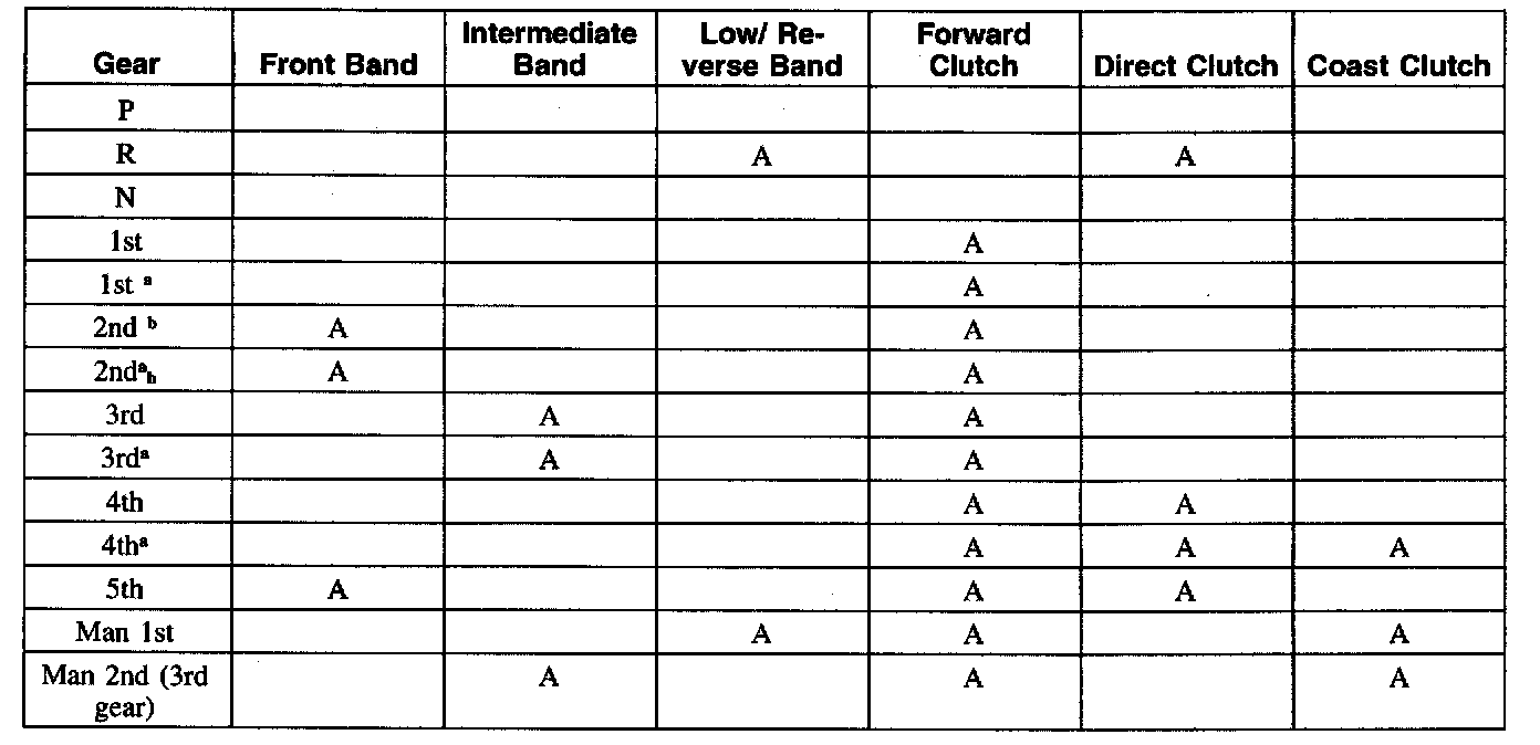 Band and Clutch Application Chart A