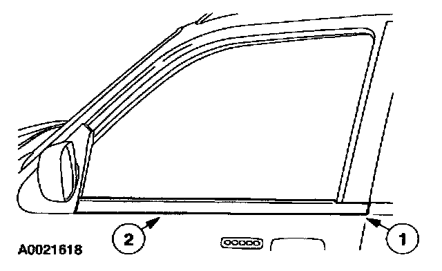 CAUTION: Do not strike or force the front door belt line moulding during installation. The front door belt line moulding is made of aluminum and will be damaged.