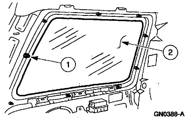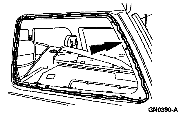 2 Push the rear quarter window glass outward to release the butyl seal.