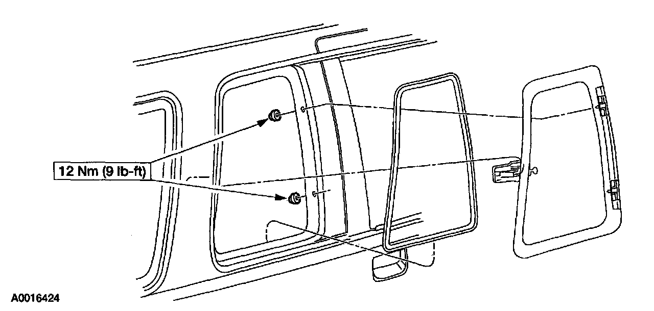 ^ If the seal requires adjustment, disconnect the quarter window latch from the quarter trim panel. Rotate the quarter window latch clockwise to increase seal pressure or counterclockwise to reduce seal pressure.