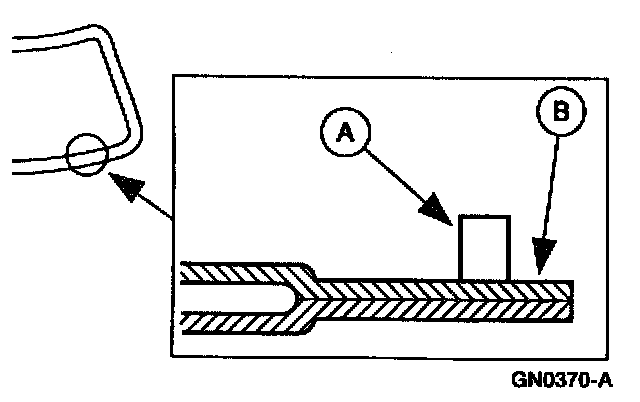 4. Apply (A) Foam Dam meeting Ford specification WSB-M2G234-C to the (B) pinch weld.