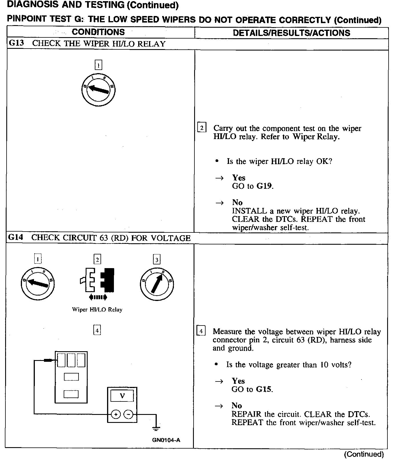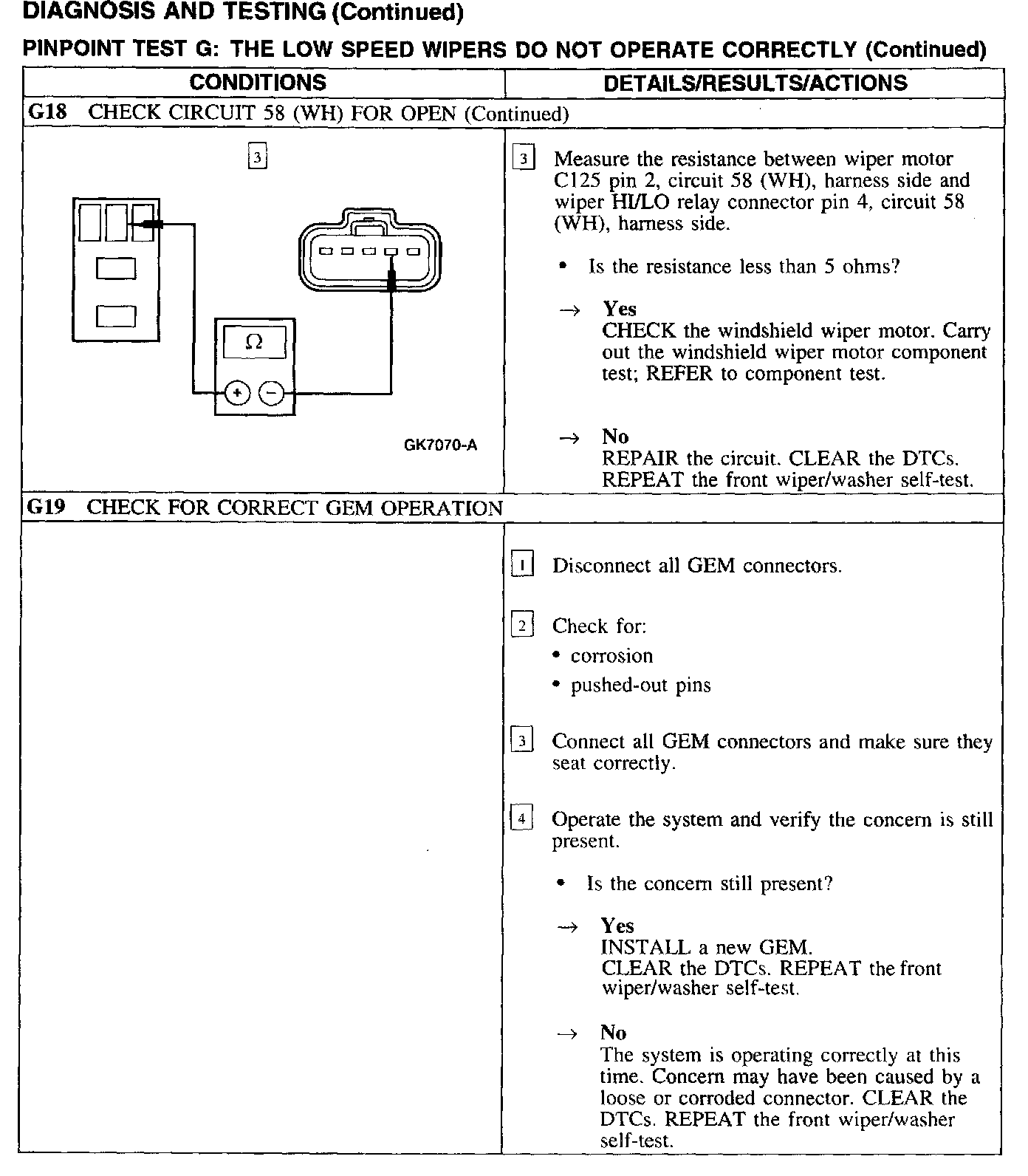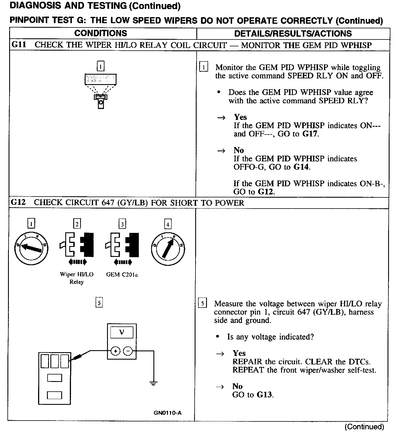 Test G: Low Wiper Speed Does Not Operate Properly