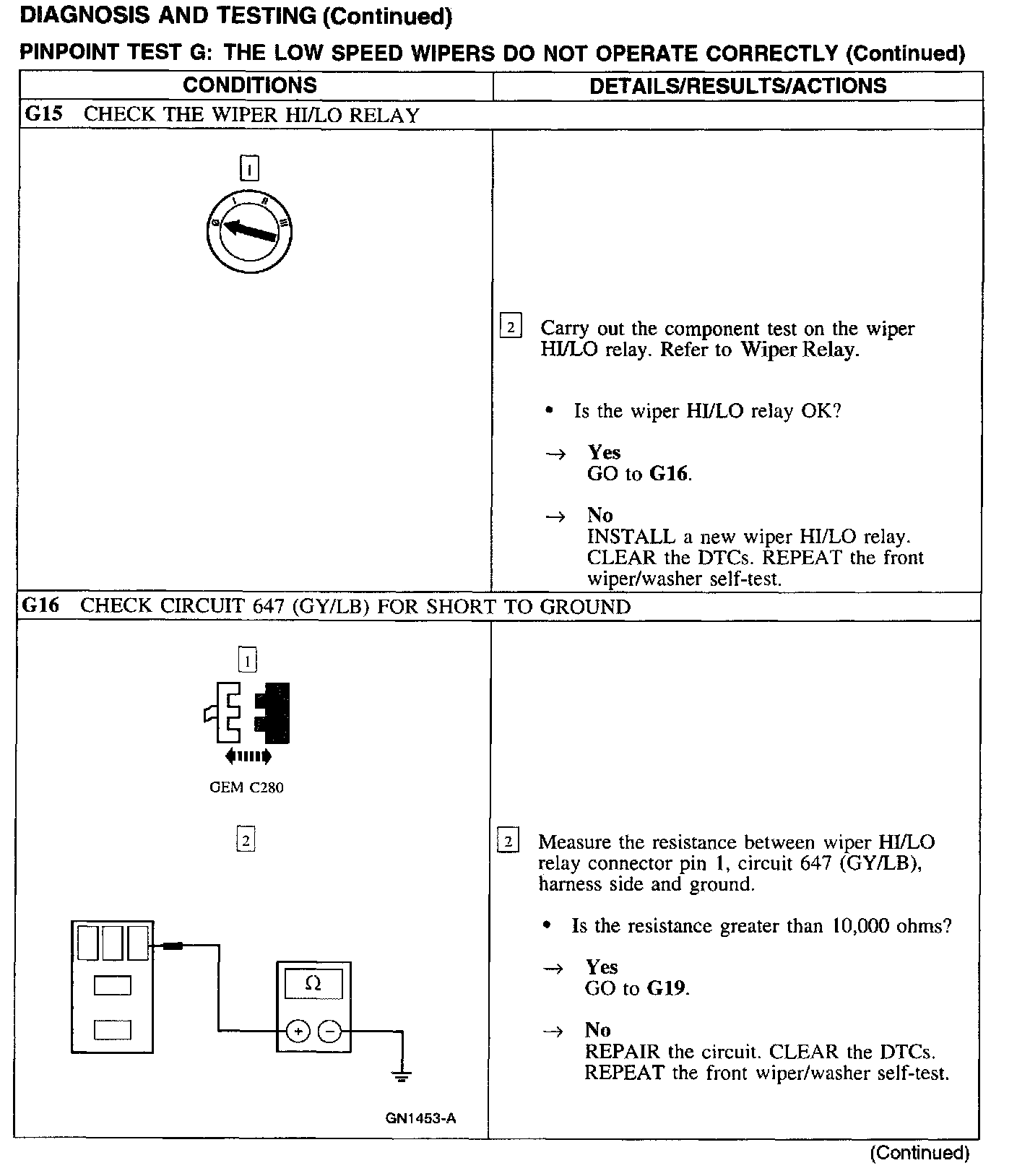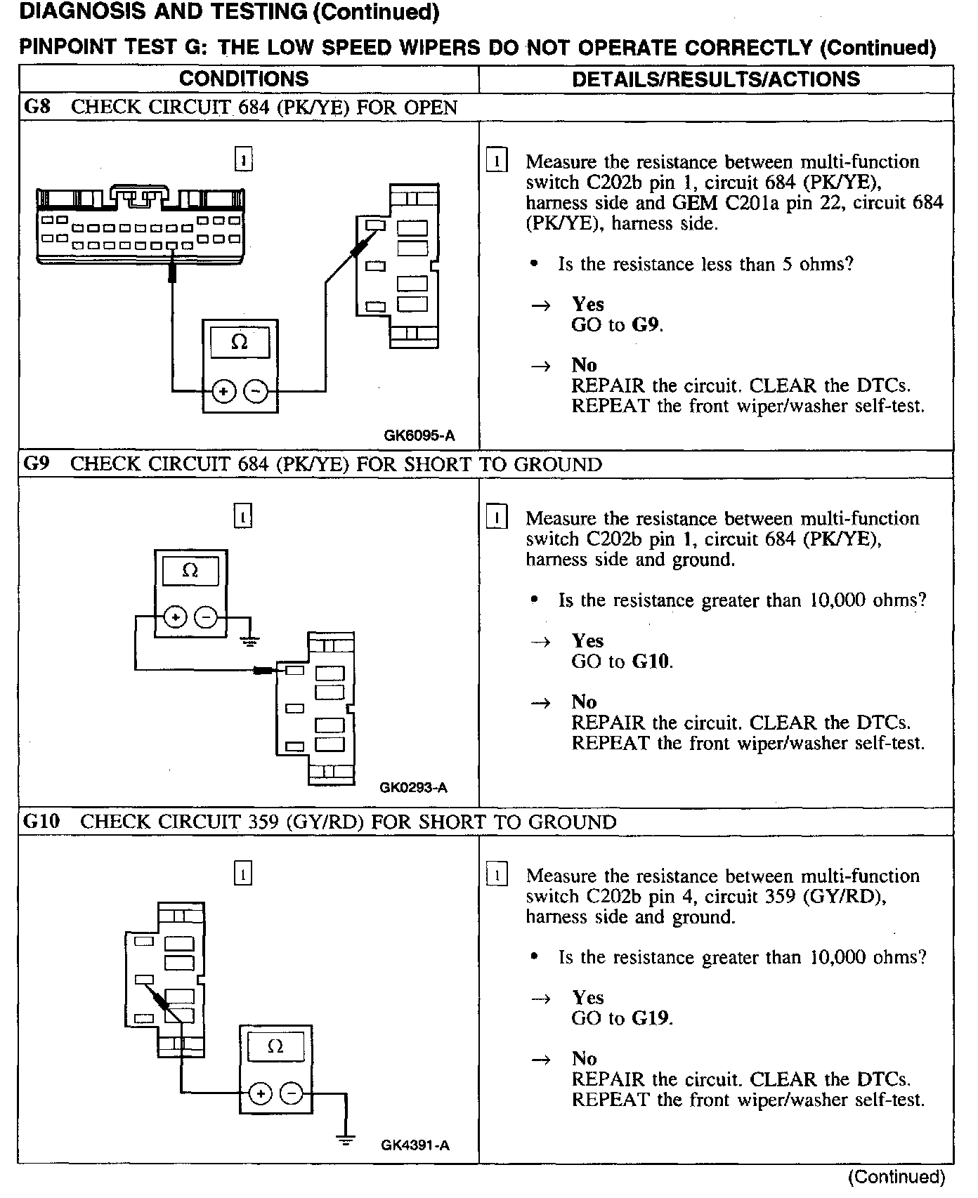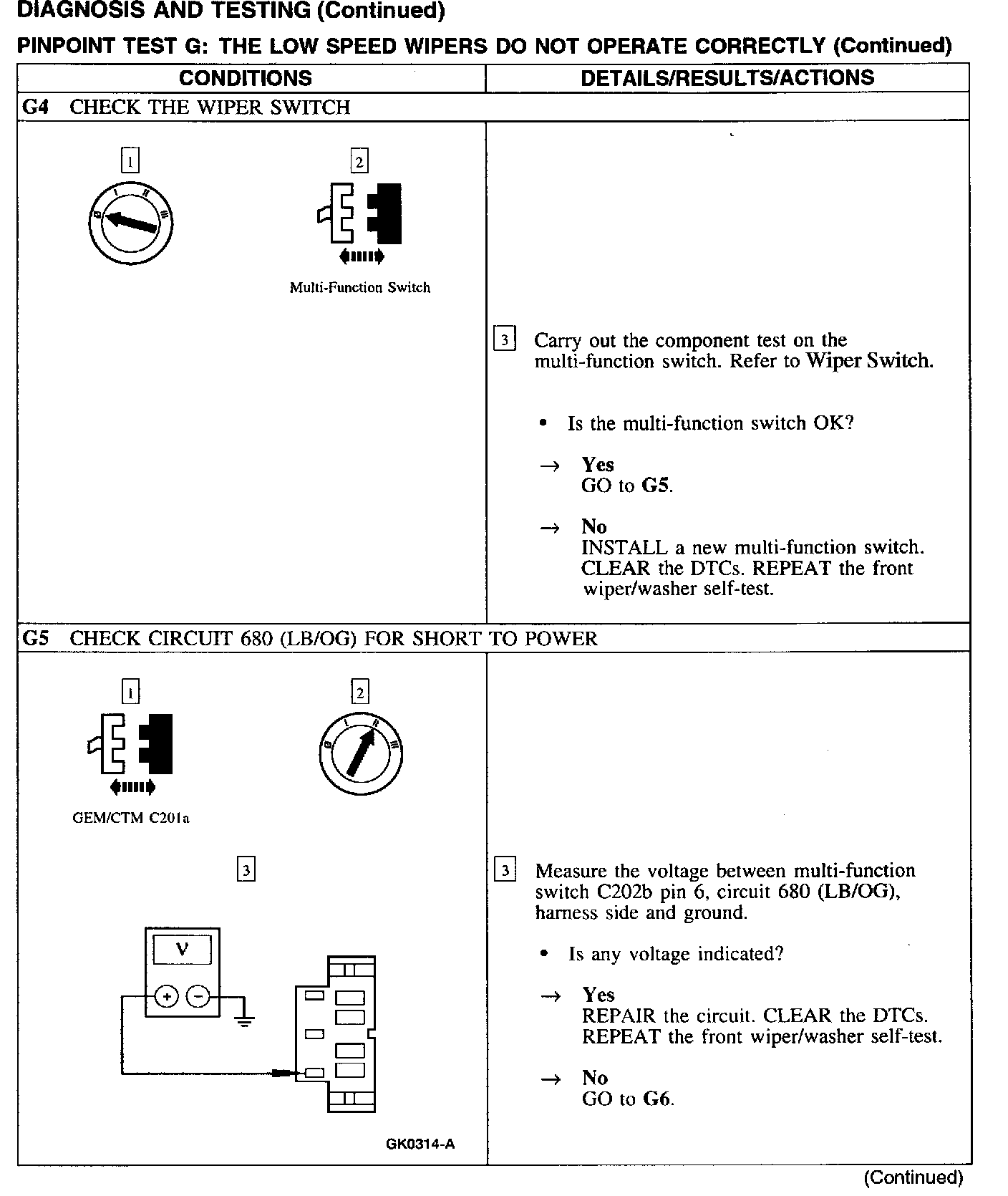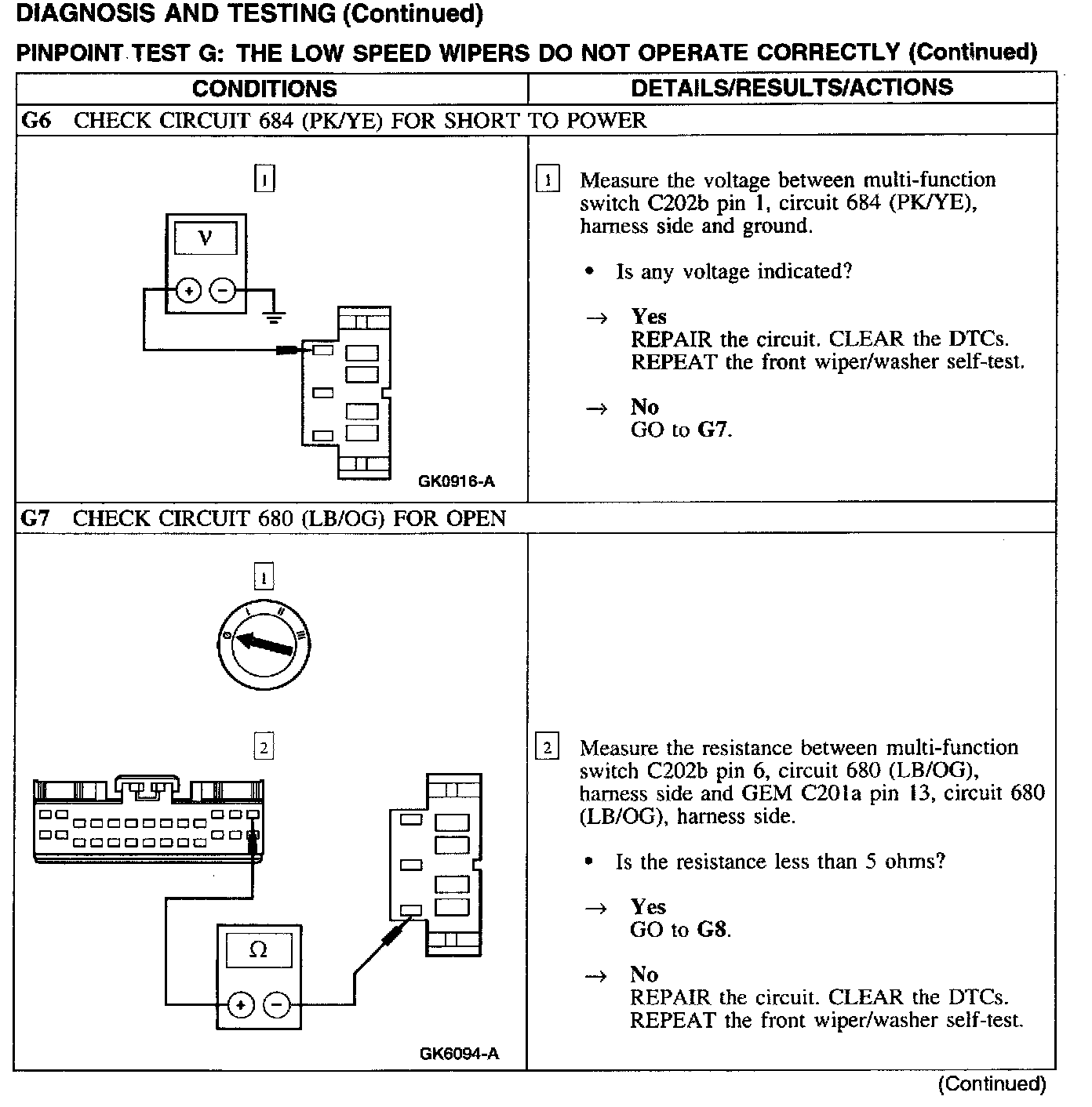 Test G: Low Wiper Speed Does Not Operate Properly
