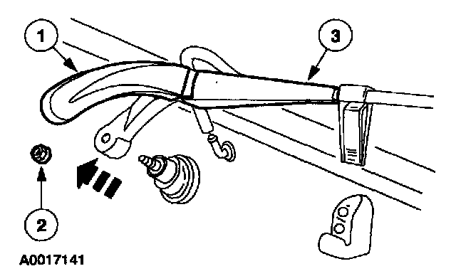 NOTE: The wiper pivot arm must be lifted straight up from the shaft to avoid damage to the wiper pivot arm or shaft.