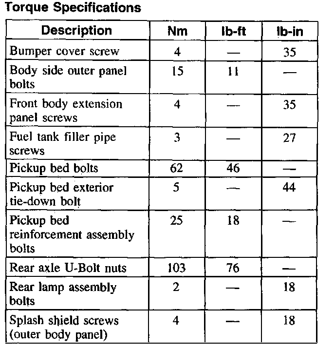 Torque Specifications