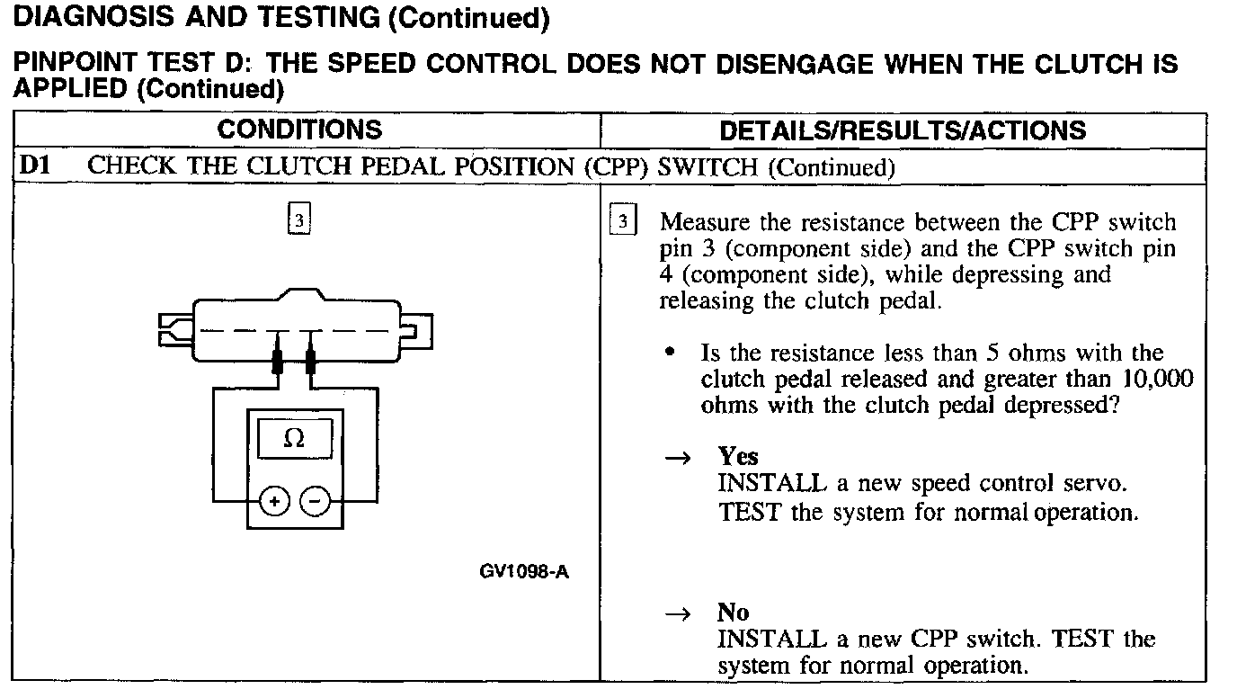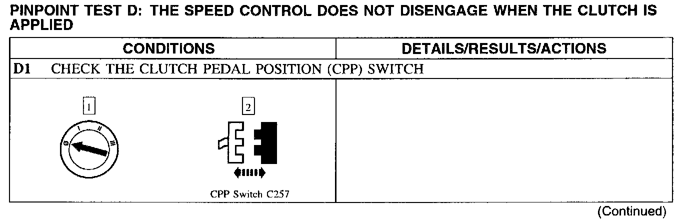 Test D: Speed Control Does Not Disengage W/Clutch Applied