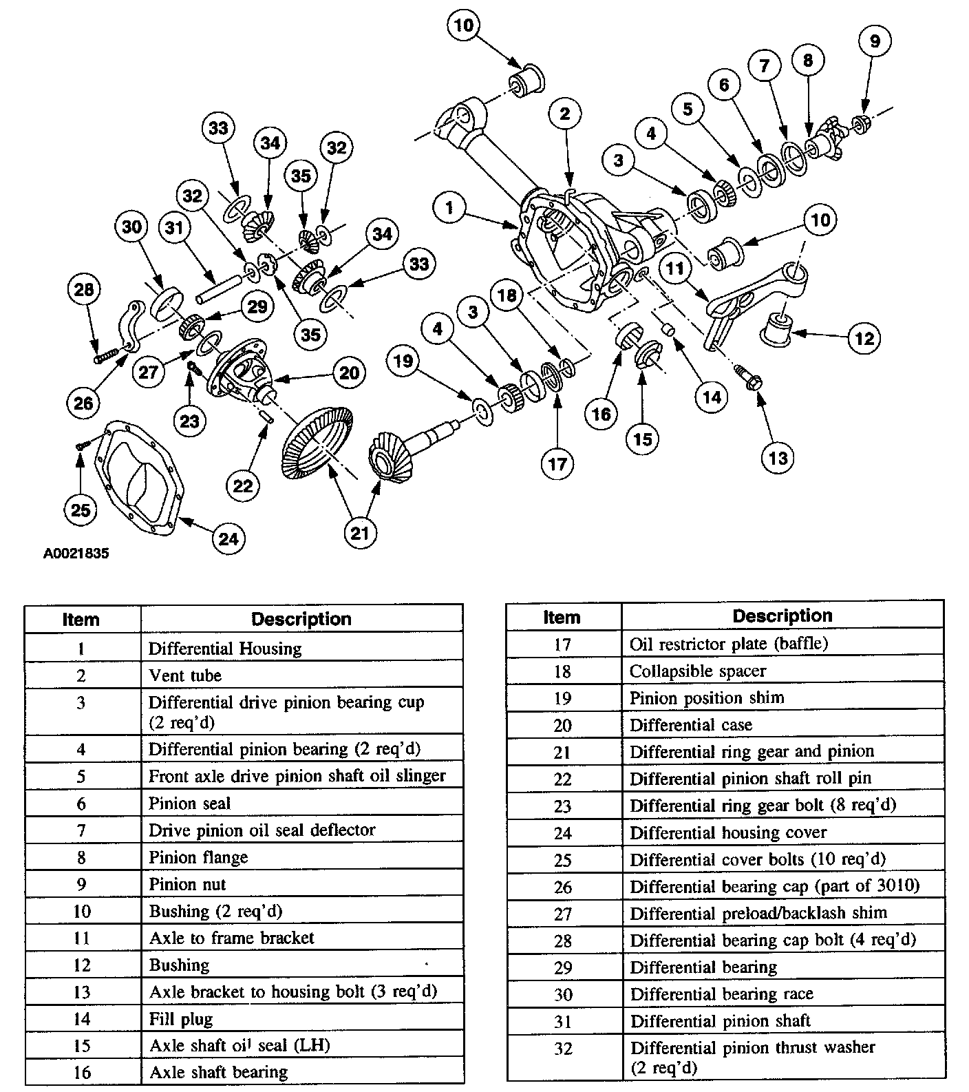 4WD Dana 35 Exploded View