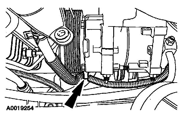 3 Remove the drive belt from the A/C compressor pulley.