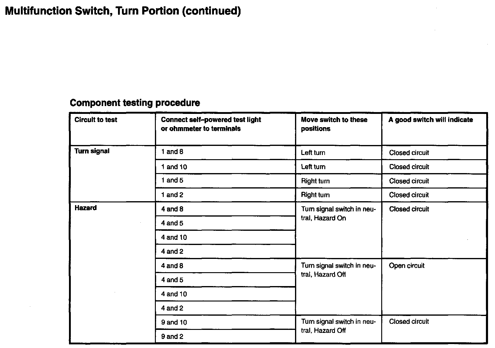 Turn Signal Switch: Testing and Inspection