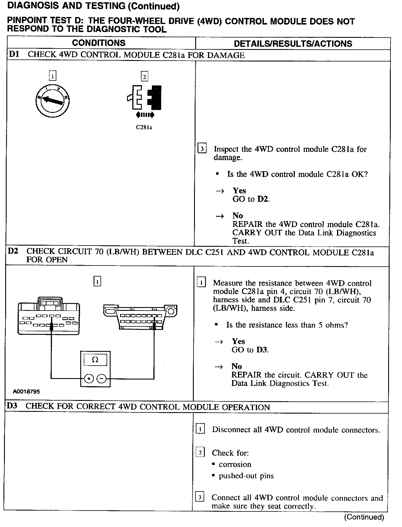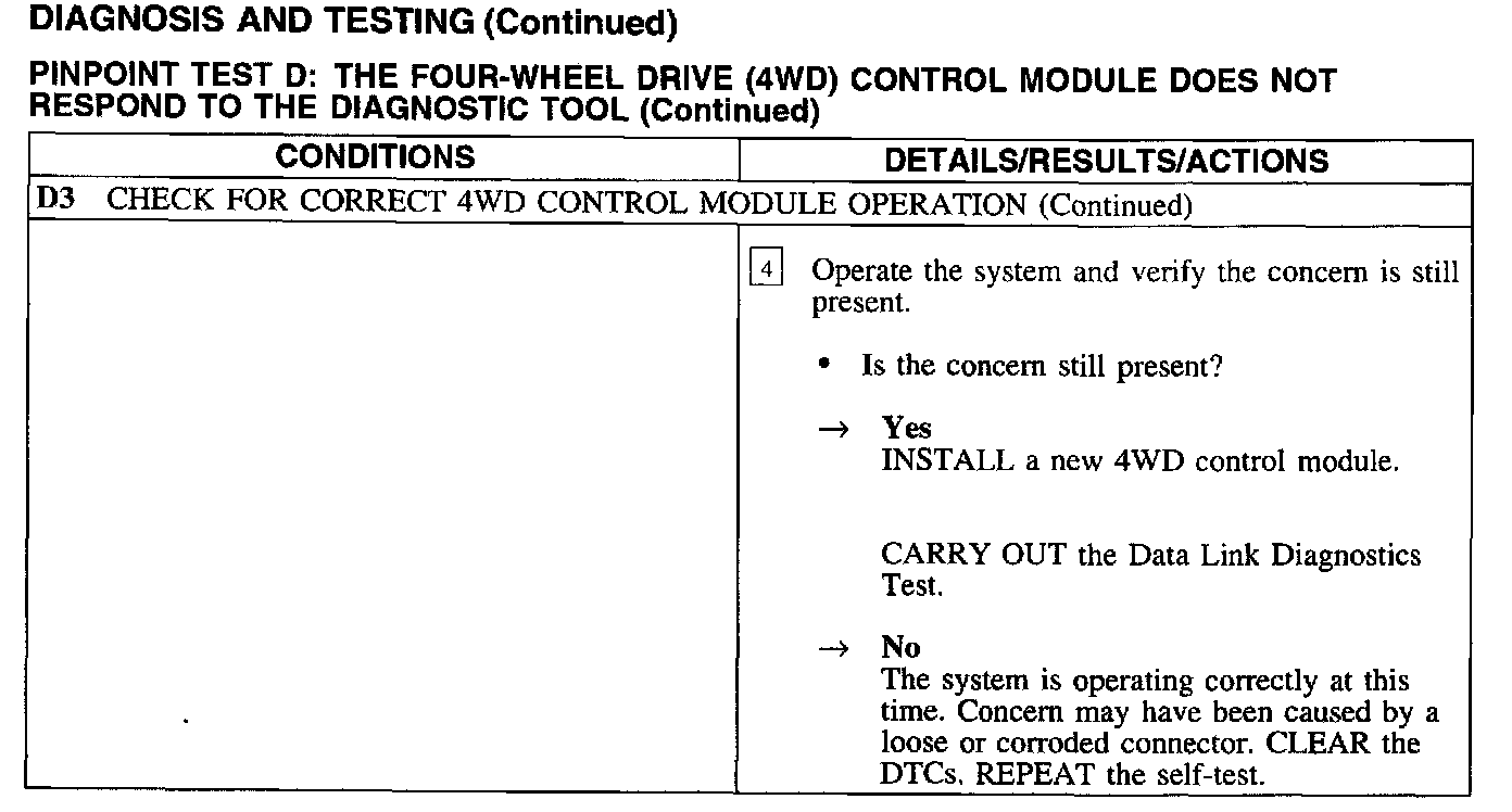 Test D: 4WD Control Module No Response To Diagnostic Tool