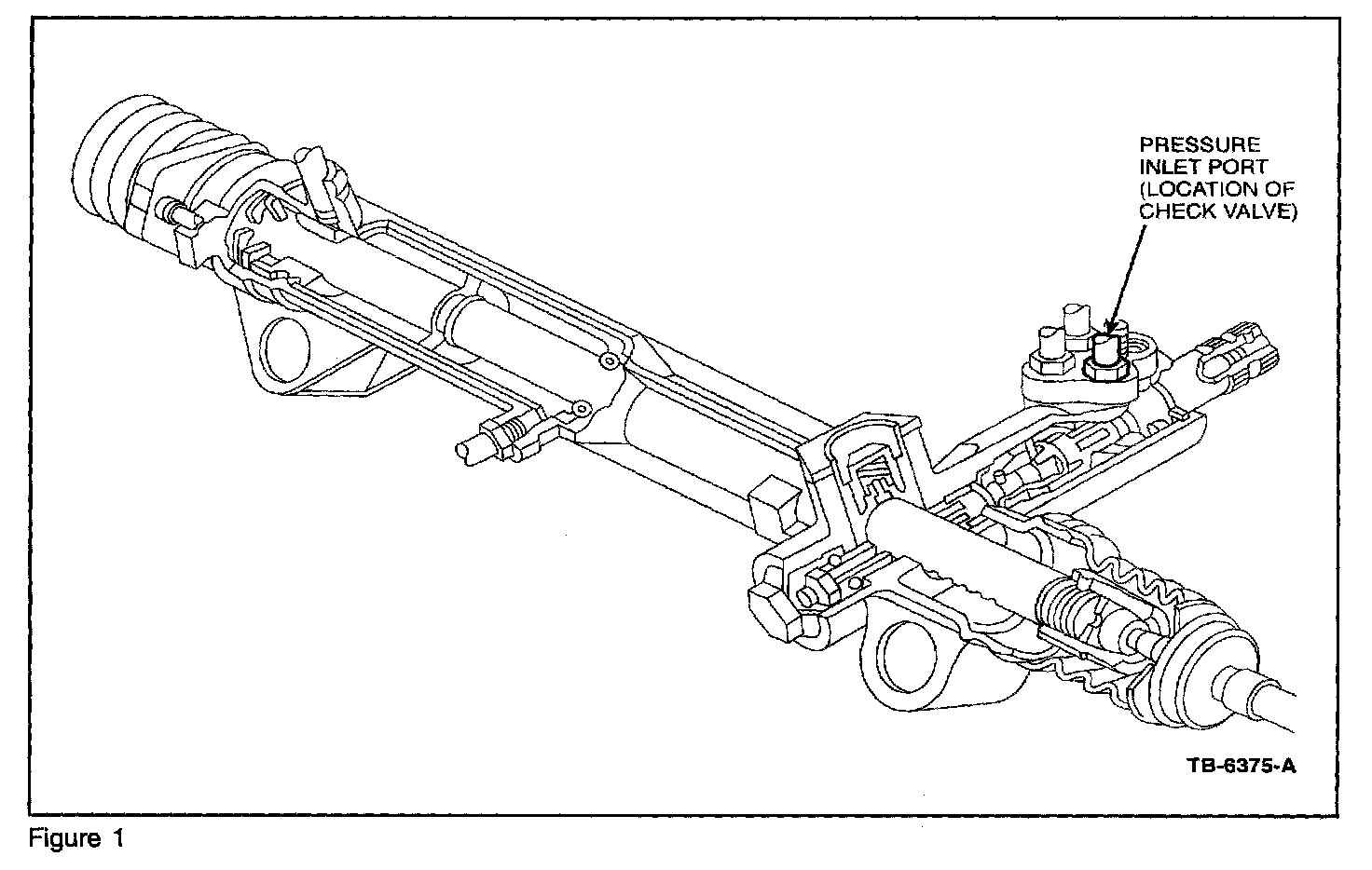 CLEAN ALL AREAS WHERE DIRT INGESTION COULD OCCUR. FAILURE TO DO SO MAY RESULT IN SYSTEM CONTAMINATION AND NOISE. Using a pick tool, remove the clip retaining the check valve in the gear inlet. Then, using the pick, remove the check valve from the port. Install the no-hole check valve WITH THE OPEN SIDE DOWNWARD into the pressure side inlet of gear (Figure 1 and Figure 2). Reattach the power steering pressure hose to the inlet of the steering gear.
