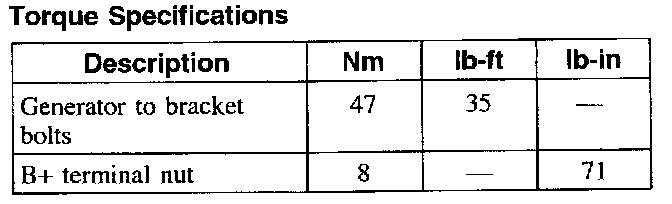 Torque Specifications:
