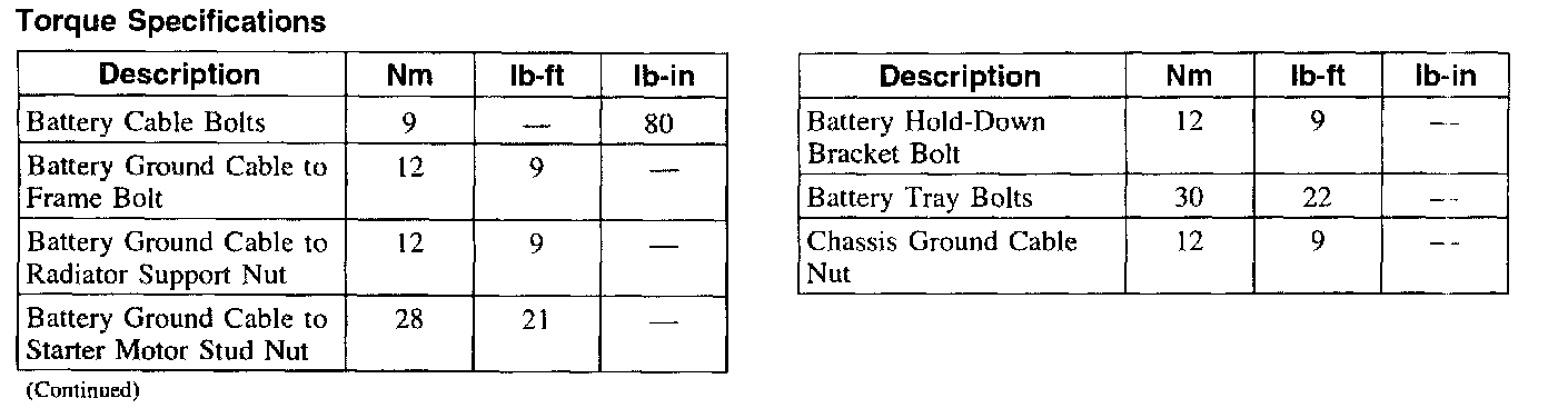 Torque Specifications: