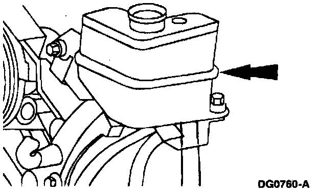 2. Disconnect the power steering return hose. Plug the reservoir.