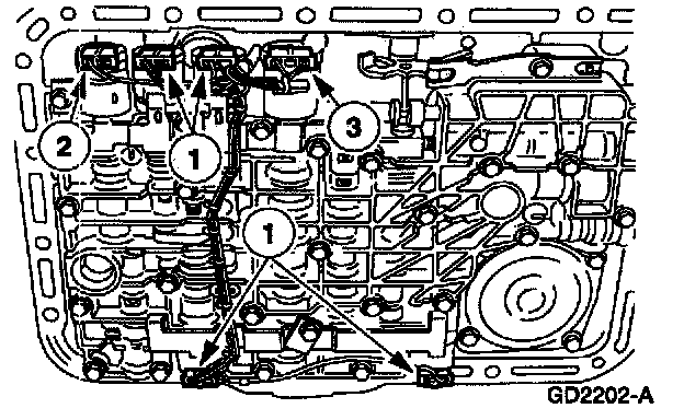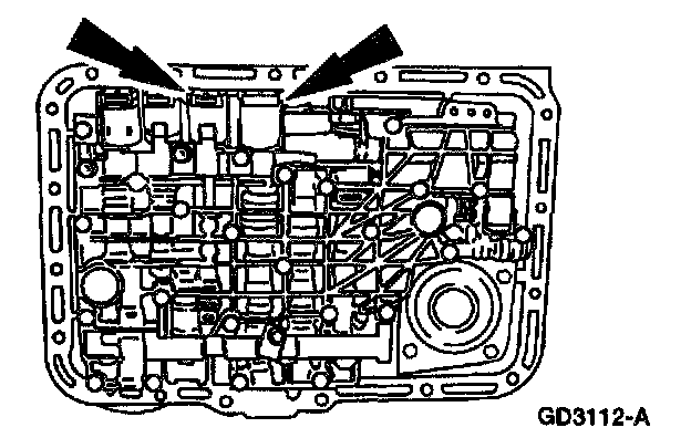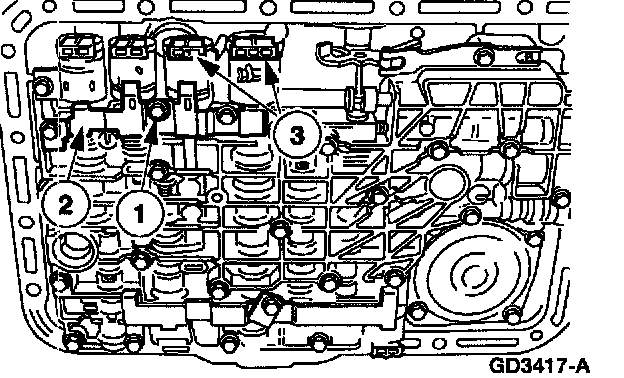 CAUTION: Shift solenoids may pop out of their bore. This may damage the solenoids.