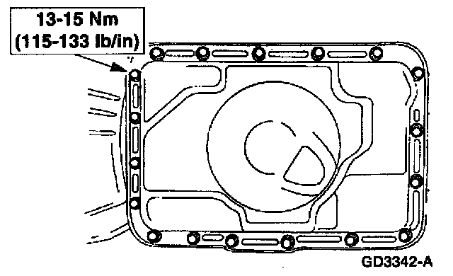- Tighten the transmission fluid pan screws in a crisscross sequence.