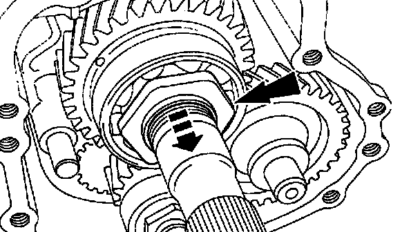 31. Remove the fluid baffle, the input bearing shim and the countershaft bearing shim.