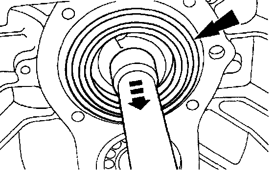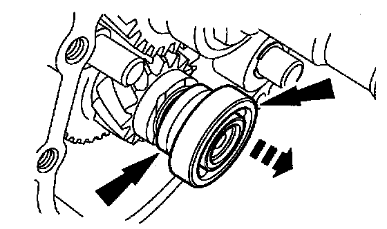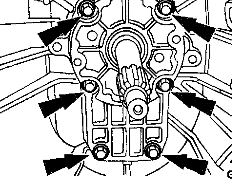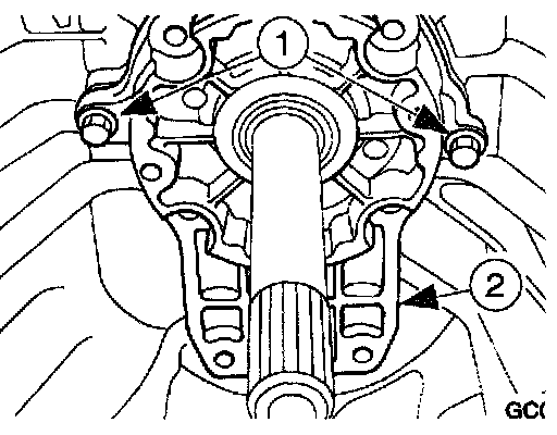 - Alternately tighten the bolts until the bearing retainer can be removed by hand.