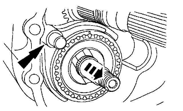 6. Remove the tone wheel snap ring, the lock bolt, then remove and discard the tone wheel.