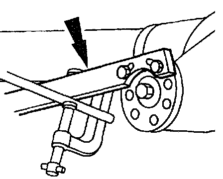 - Clamp a rigid bar or pipe to the tool. Clamp the other end of the bar or pipe to the frame or a body member to prevent movement of the rear axle pinion flange.