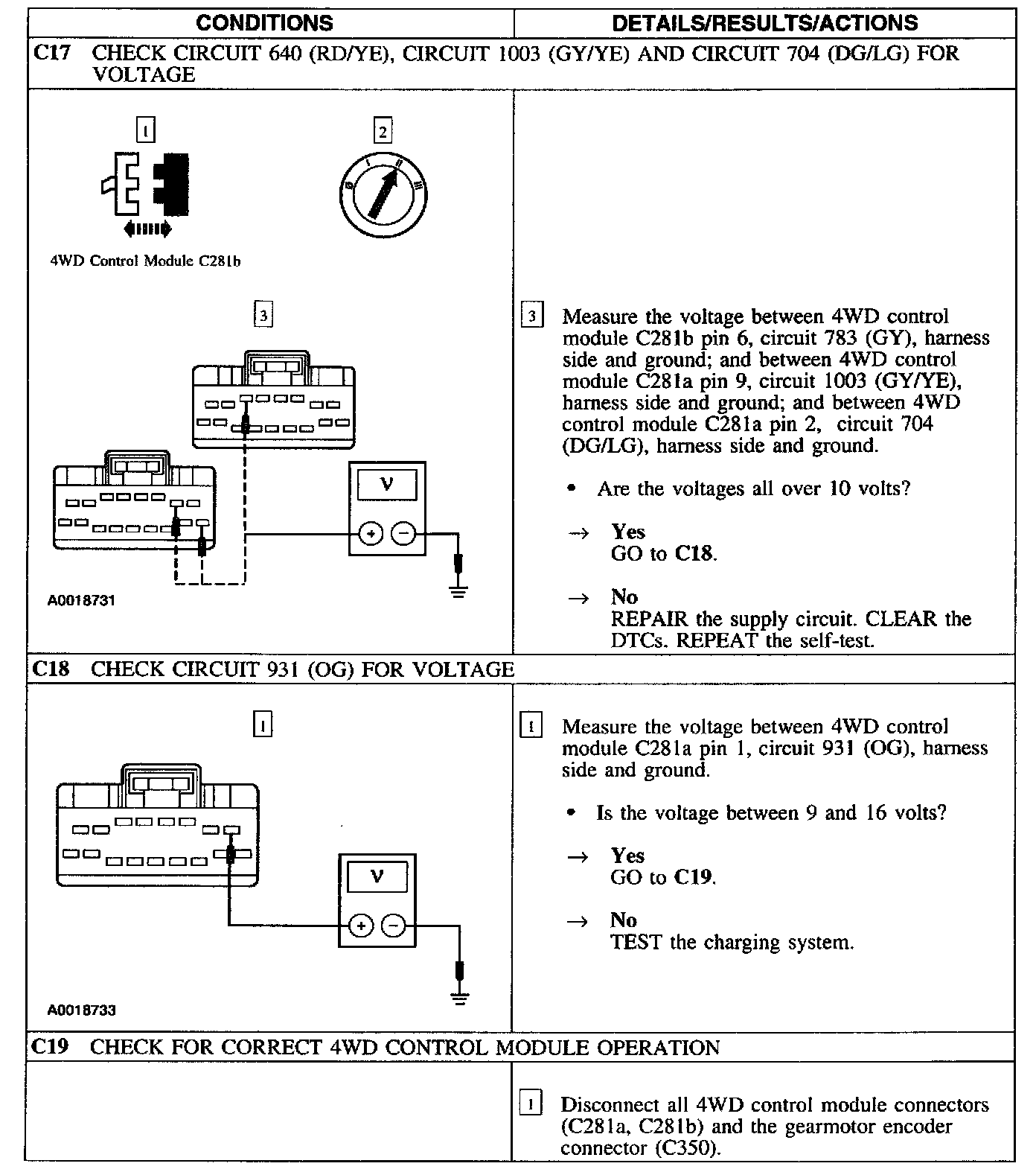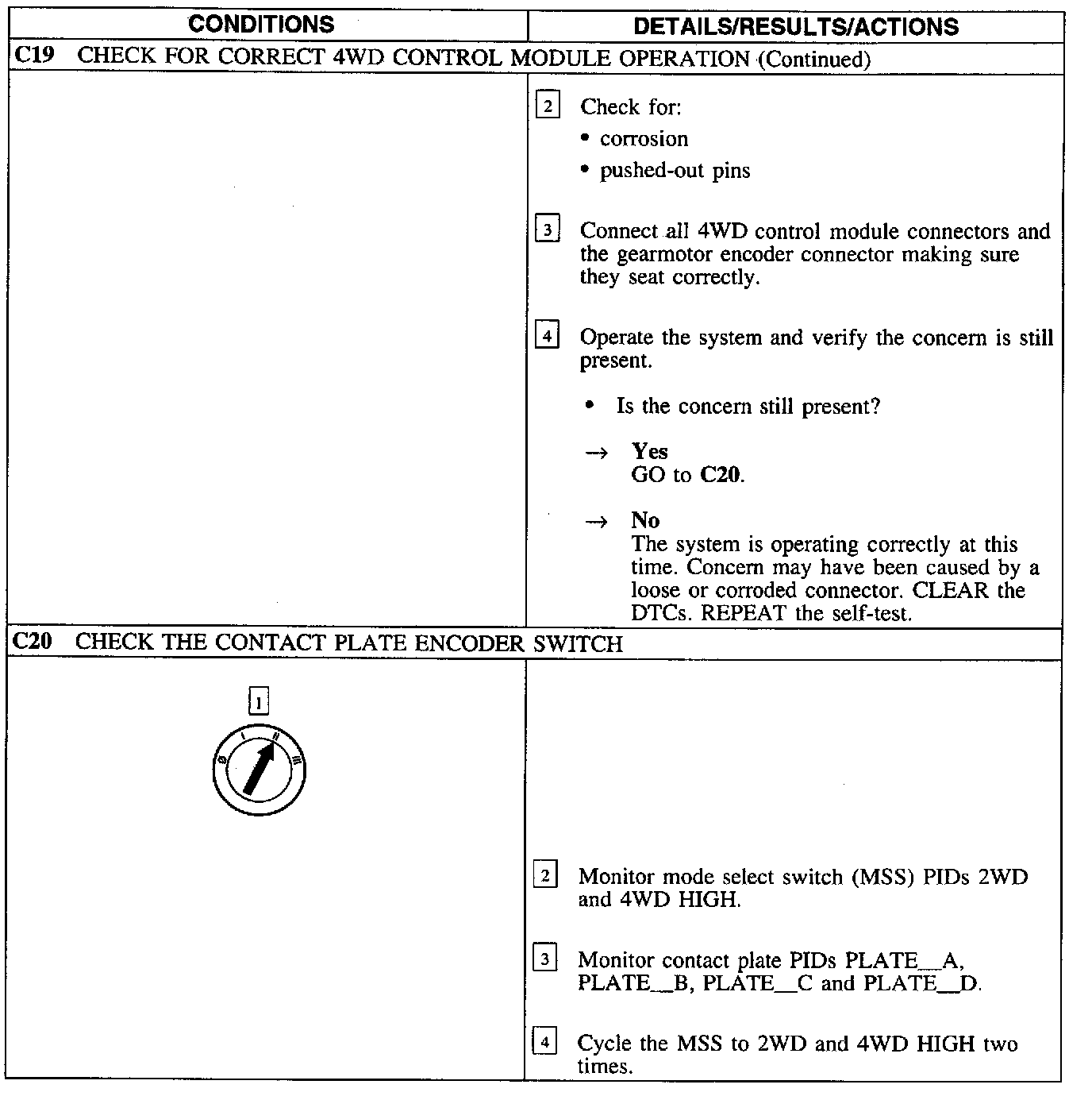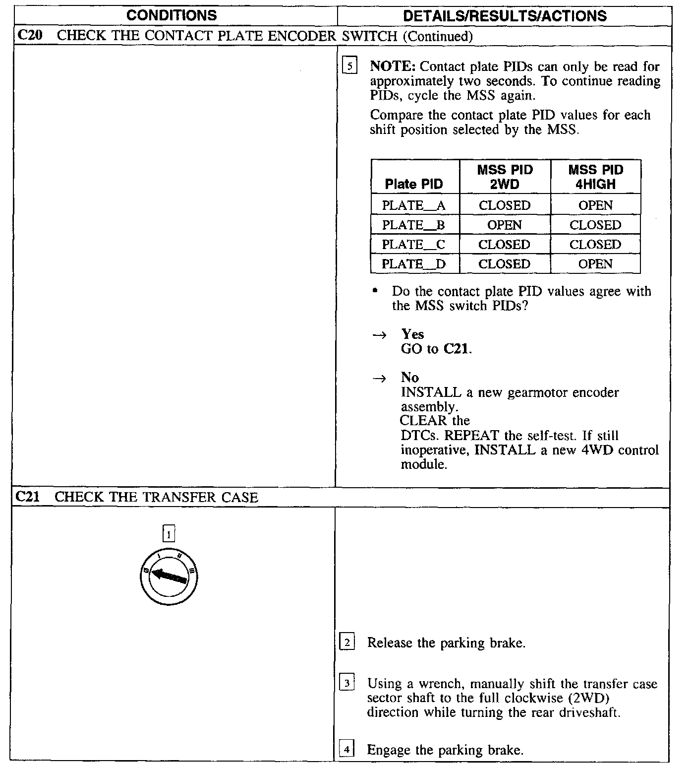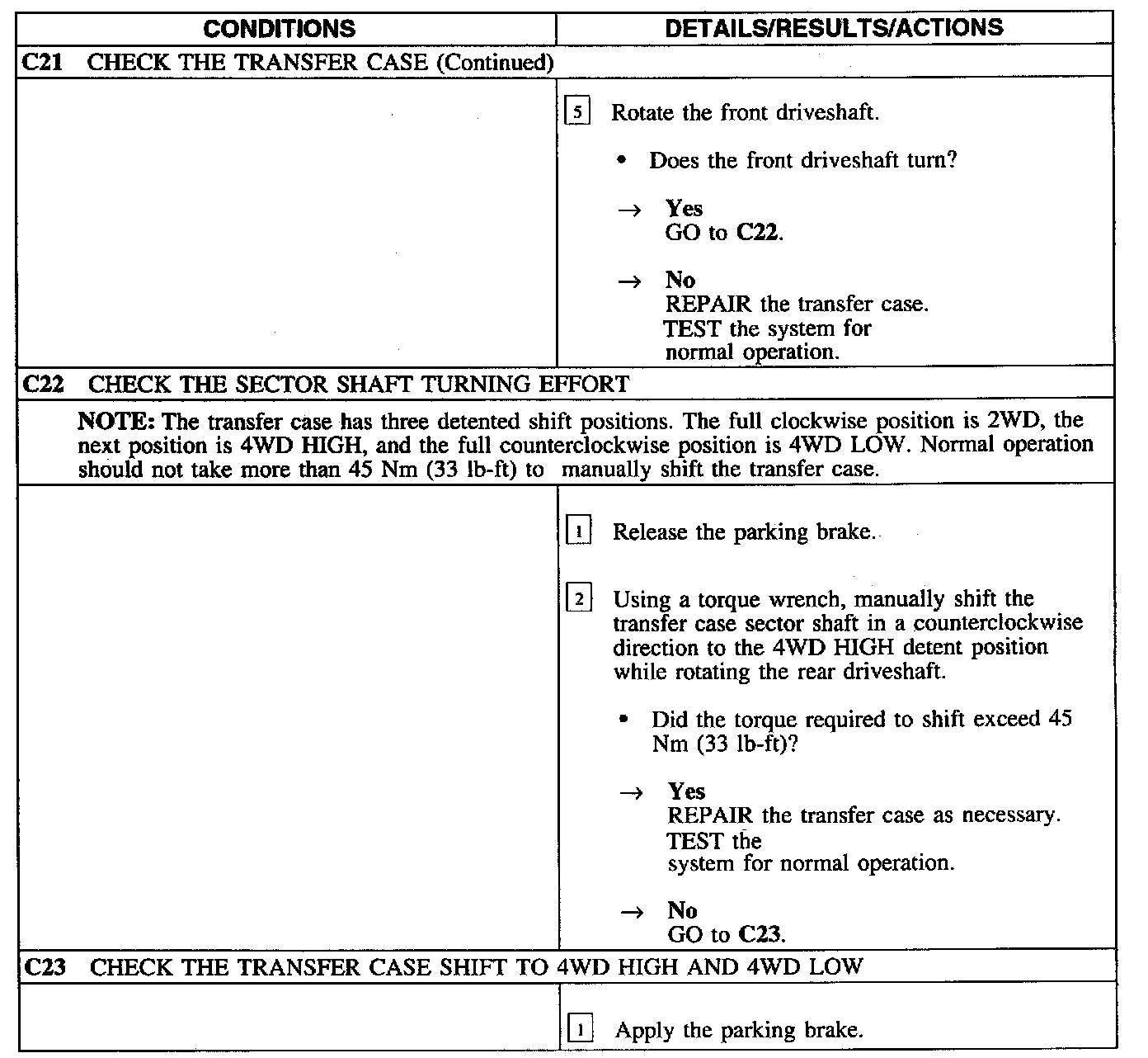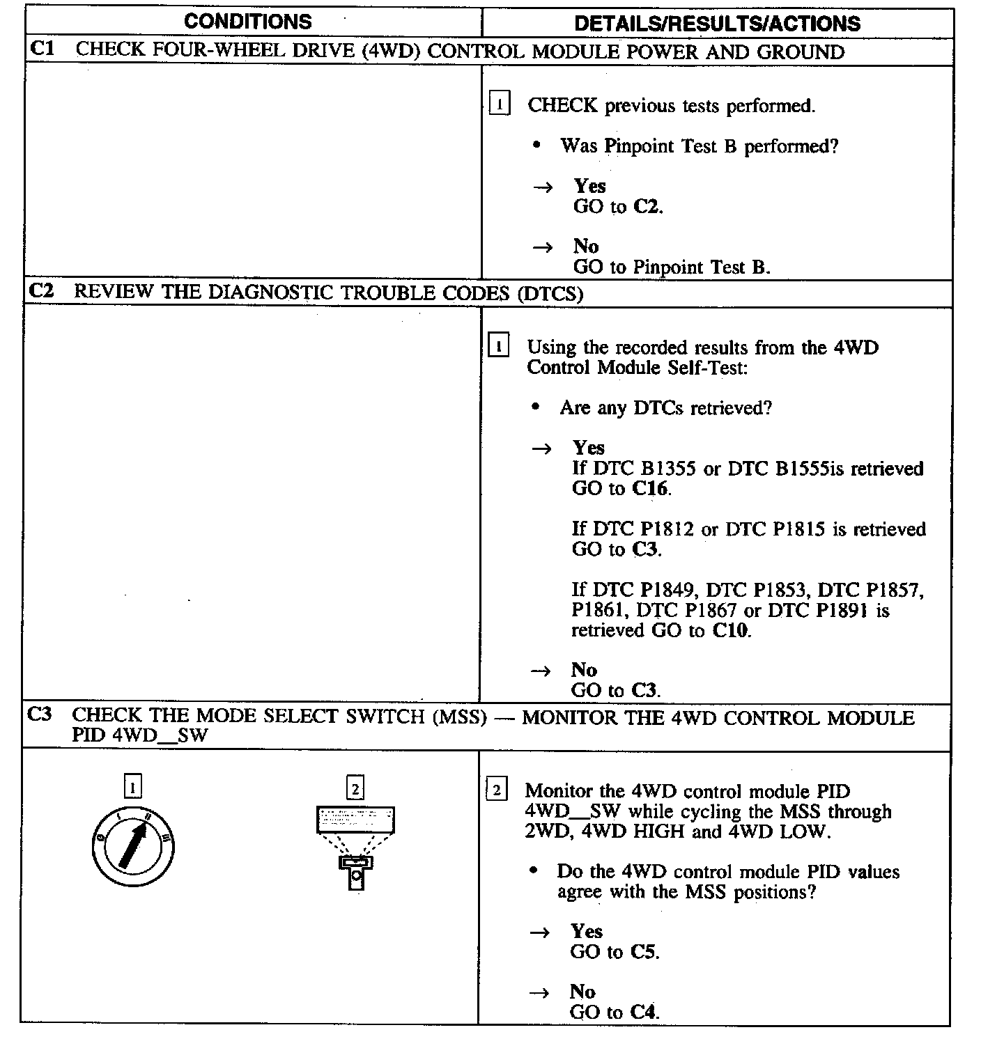 PINPOINT TEST C: THE VEHICLE DOES NOT SHIFT BETWEEN 2WD AND 4WD MODES CORRECTLY