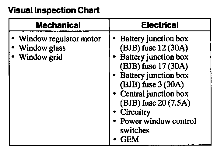 1. Verify the customer concern by operating the system.Visual Inspection Chart: