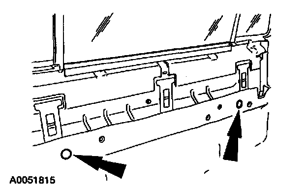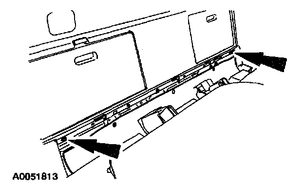 4. Open the luggage compartment trim panel access doors and remove the four pin-type retainers and the luggage compartment trim panel.