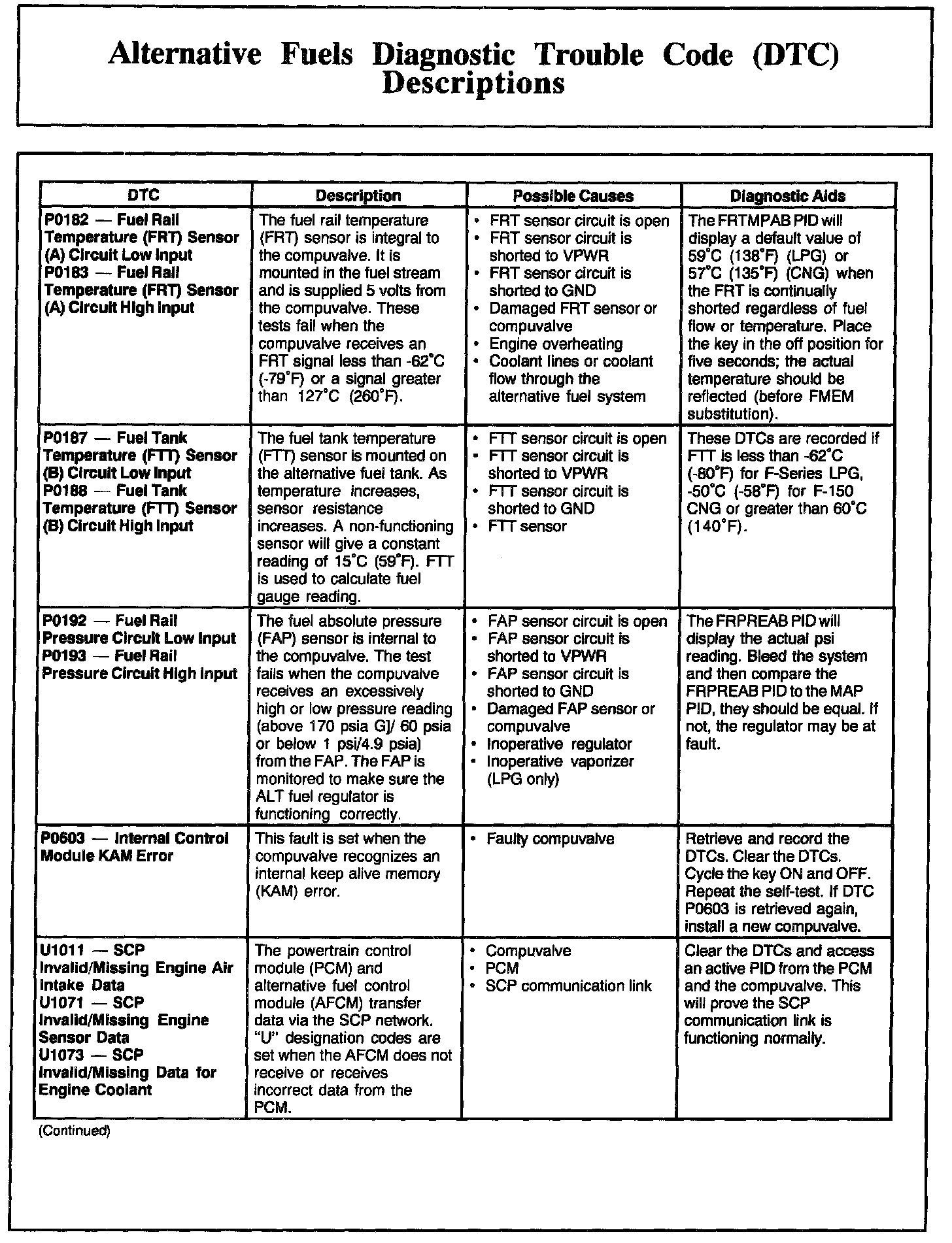 P0182-P0503 / U1011-U1073: