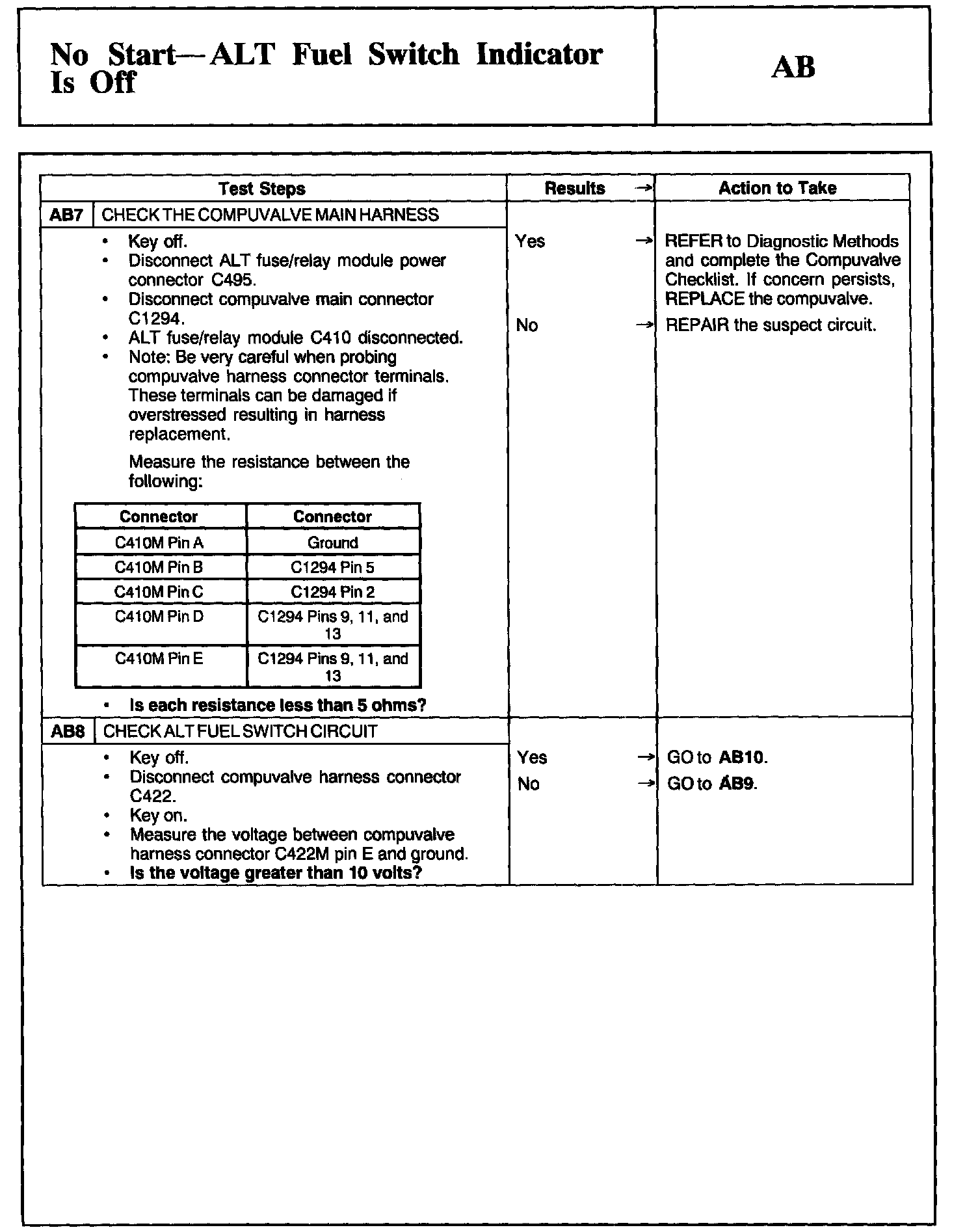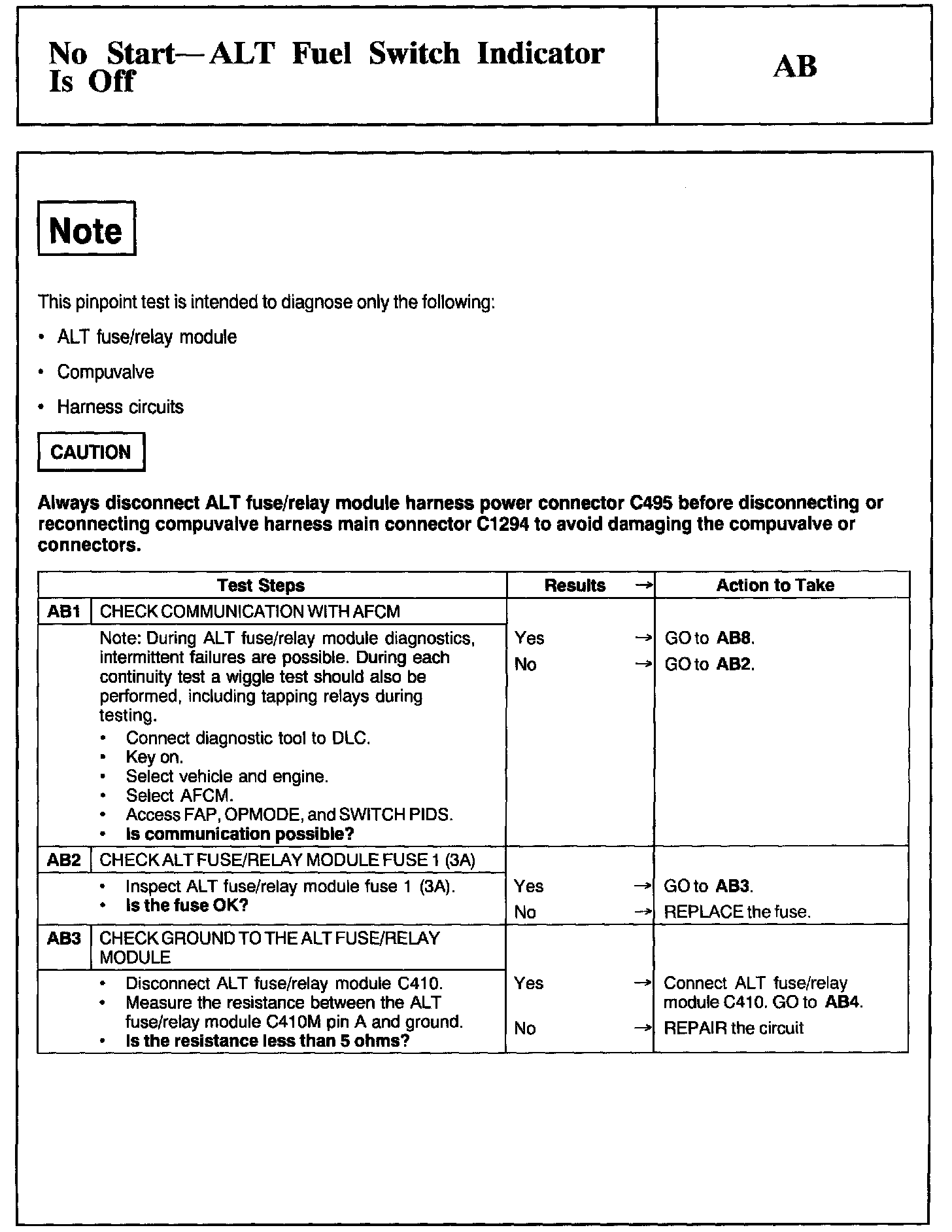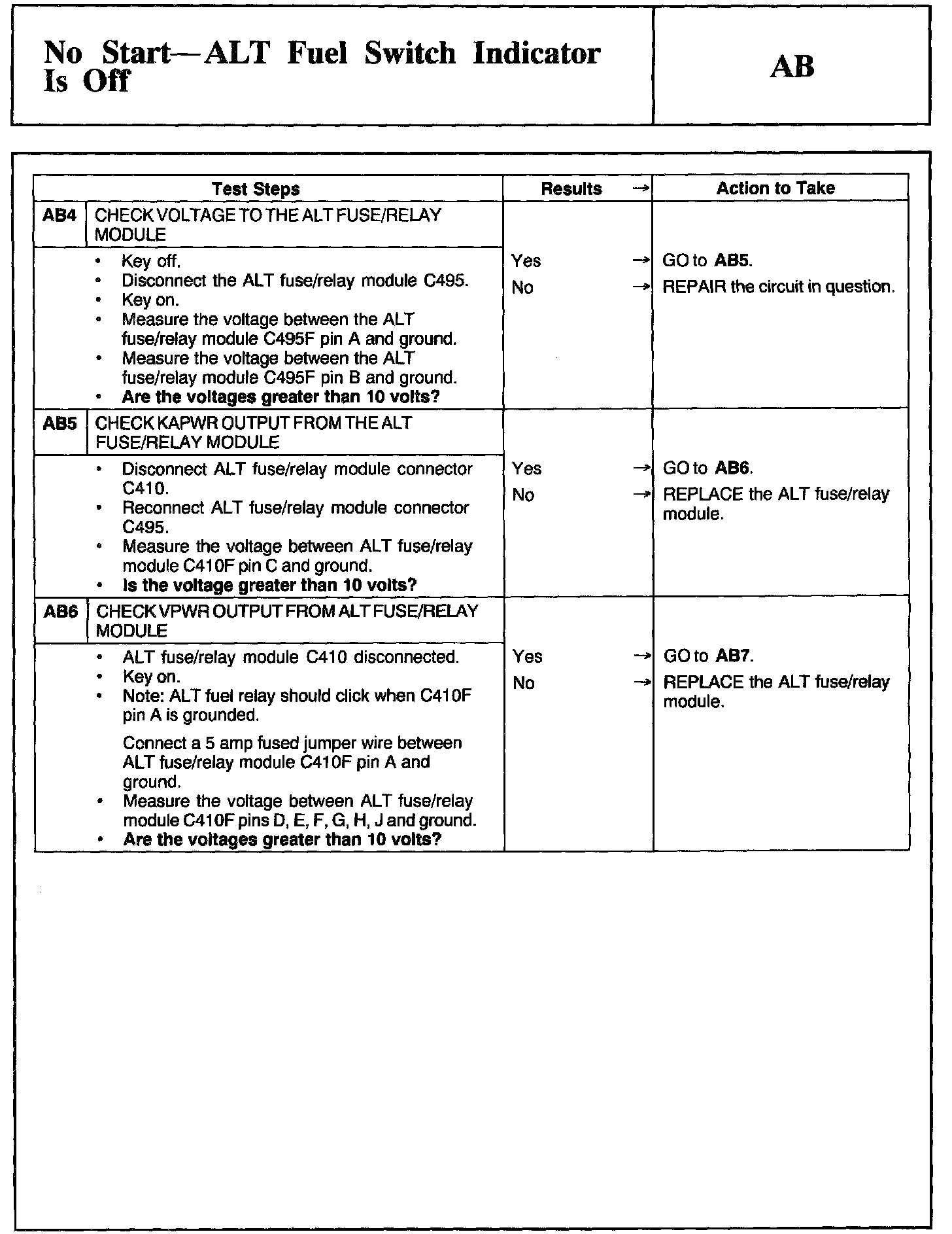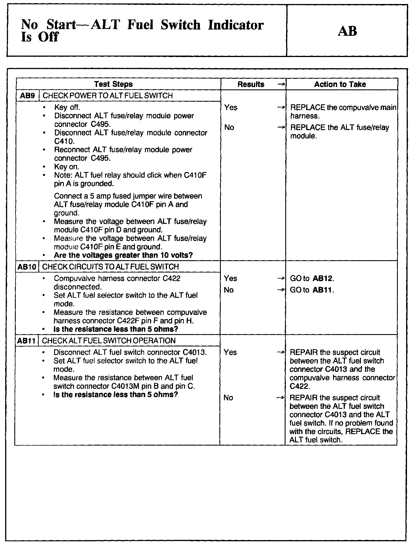 Test AB: No Start - ALT Fuel Switch Indicator Is Off