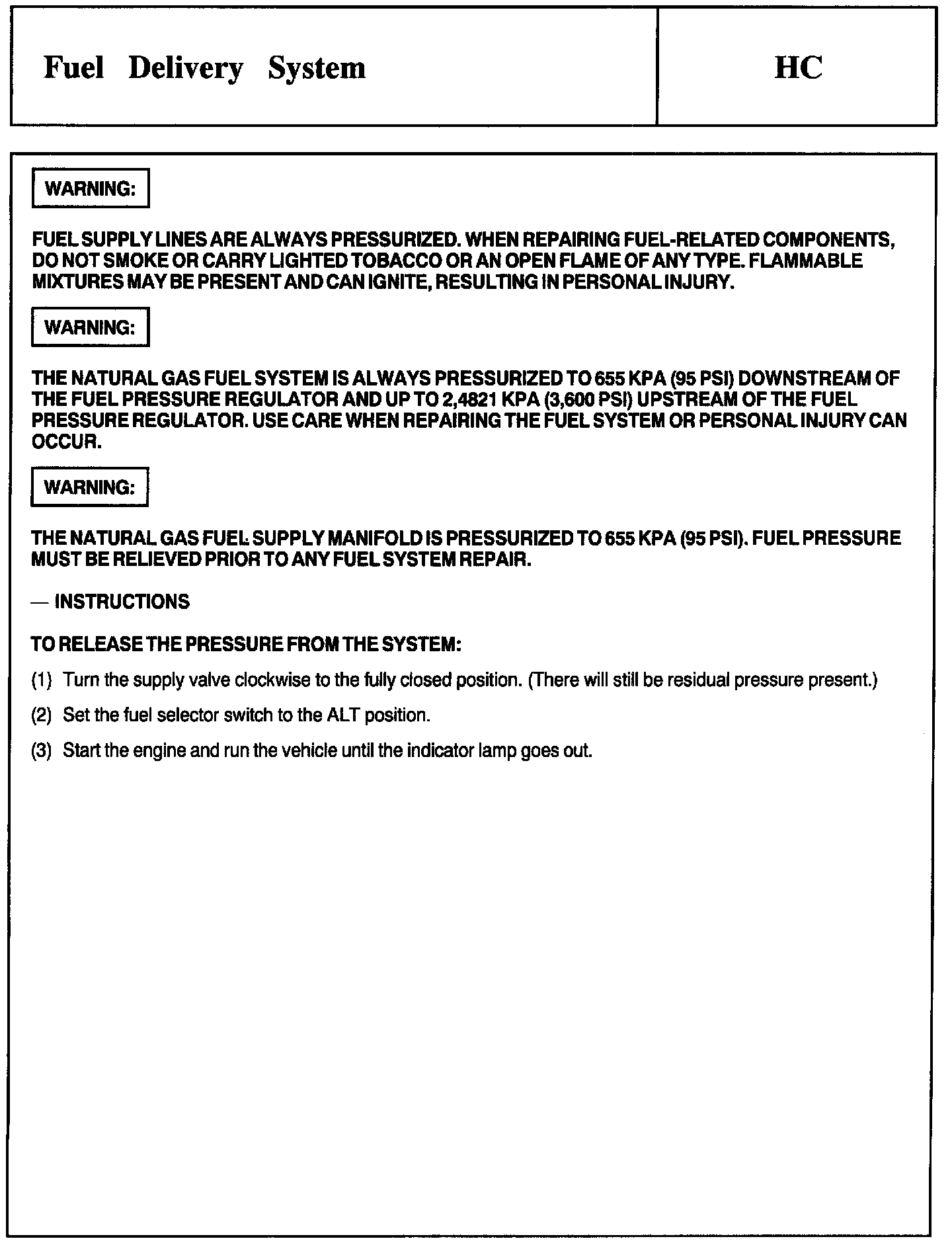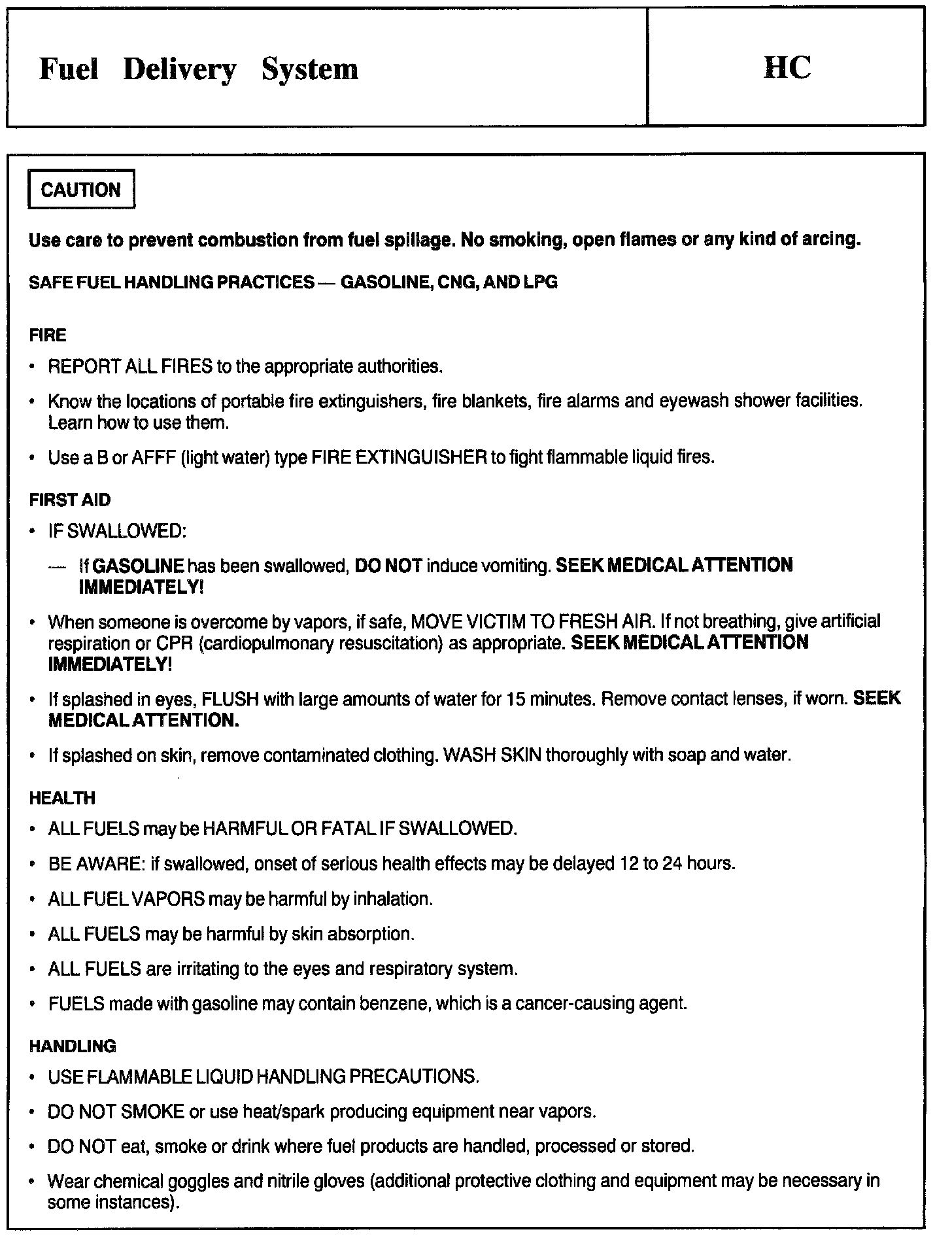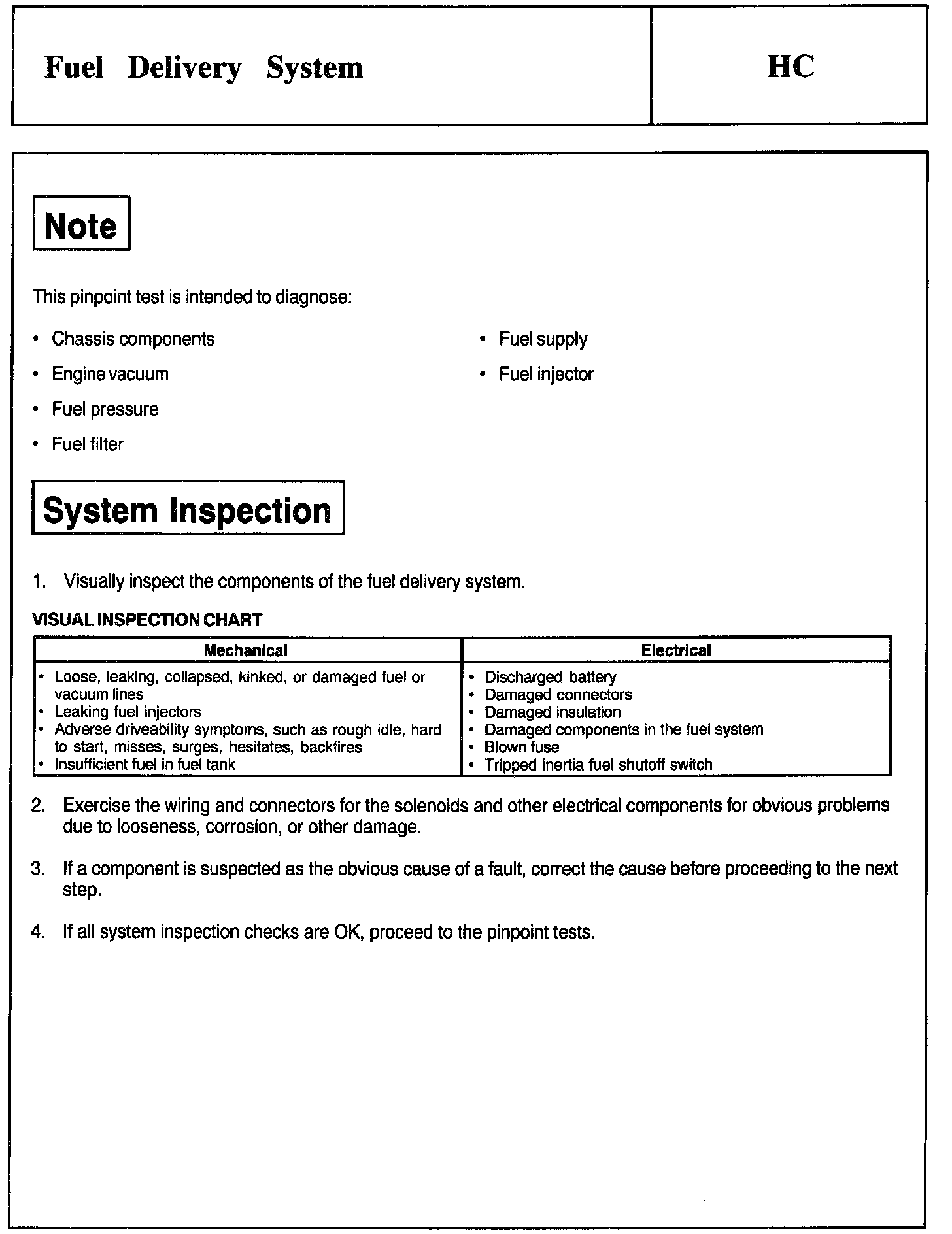Test HC: Fuel Delivery System
