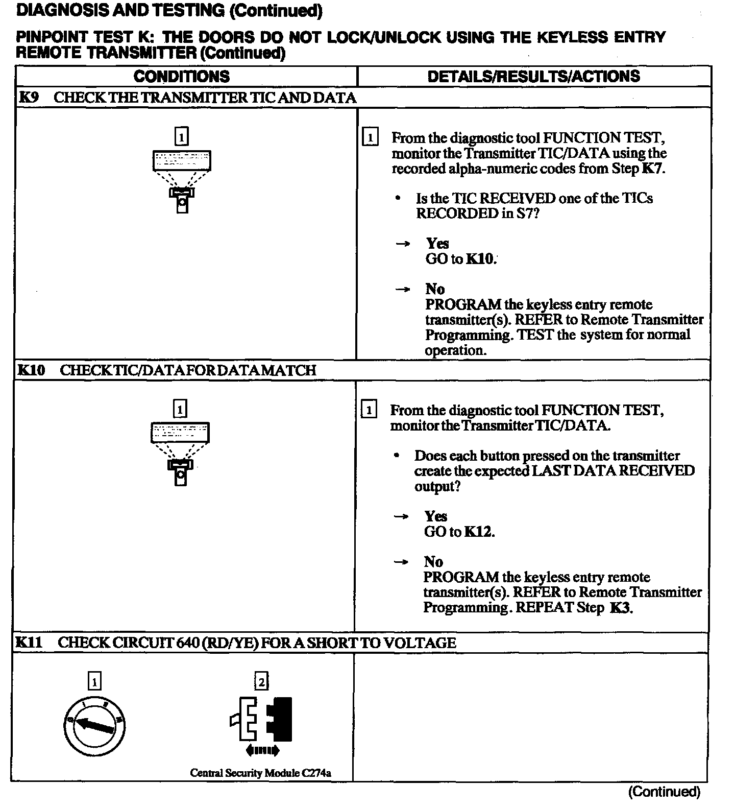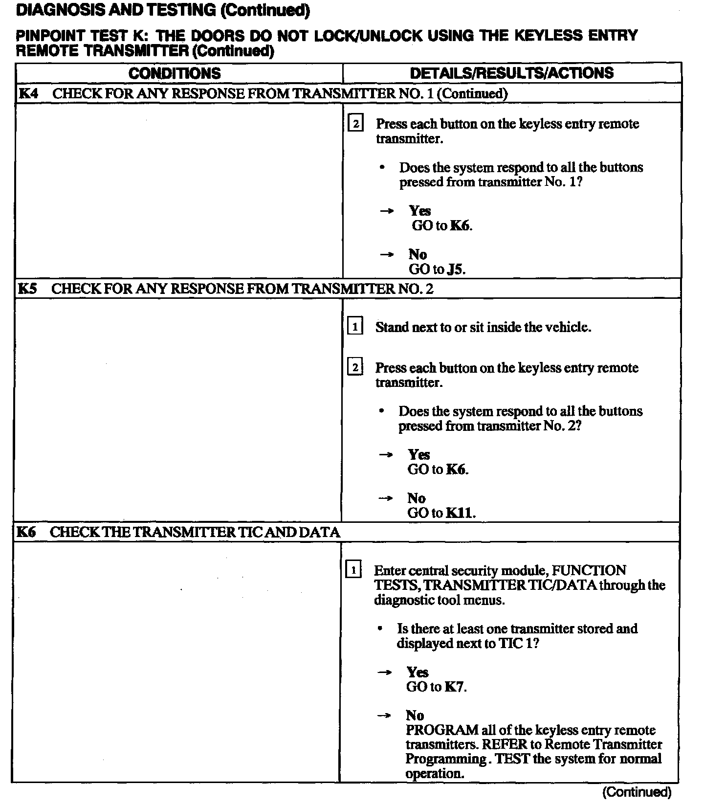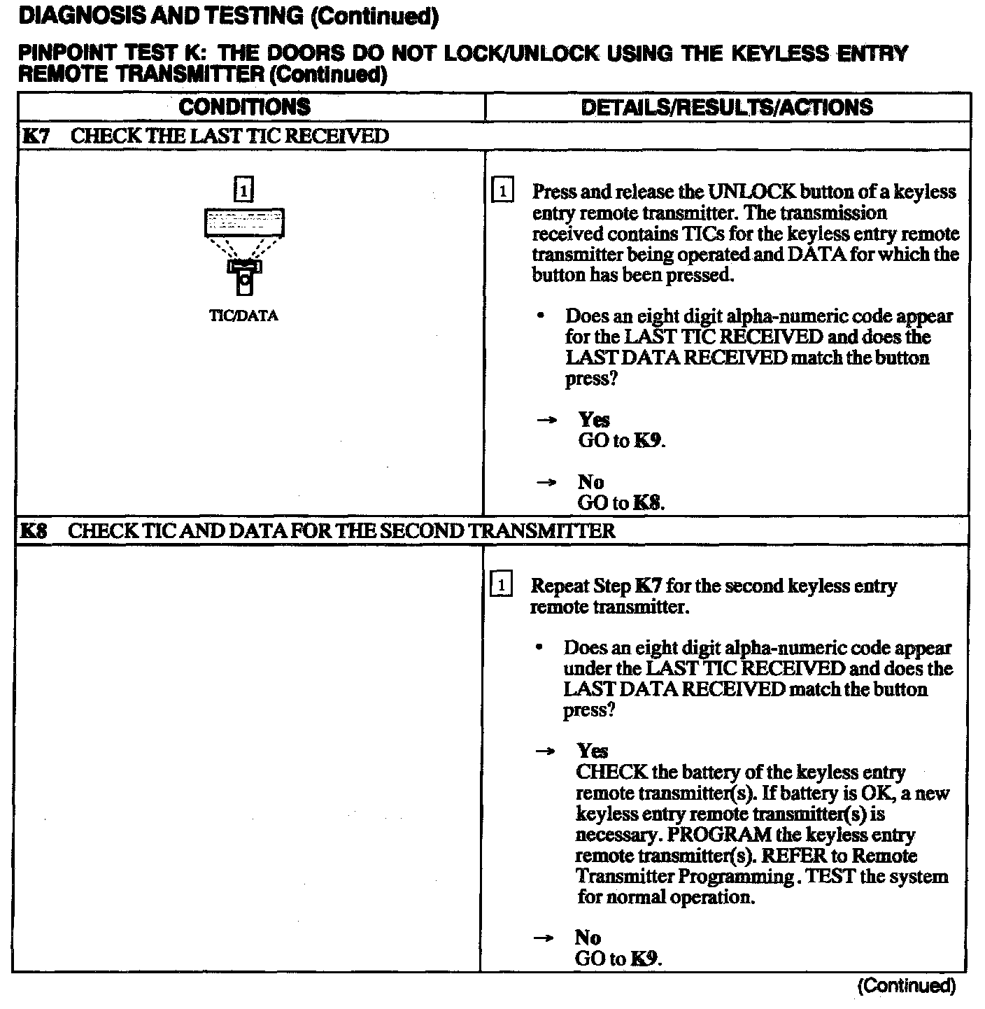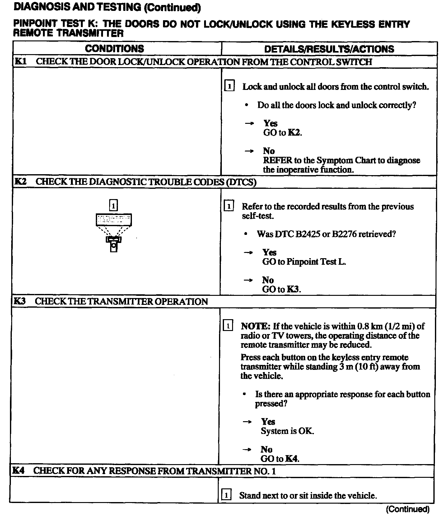 Test K: Doors Do Not Lock/Unlock Using Keyless Entry Remote