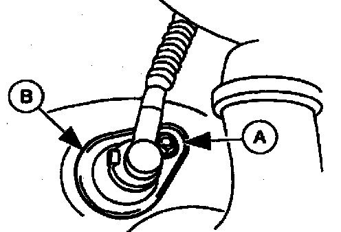 3. Remove the (A) front anti-lock brake sensor bolt and the (B) front anti-lock brake sensor.