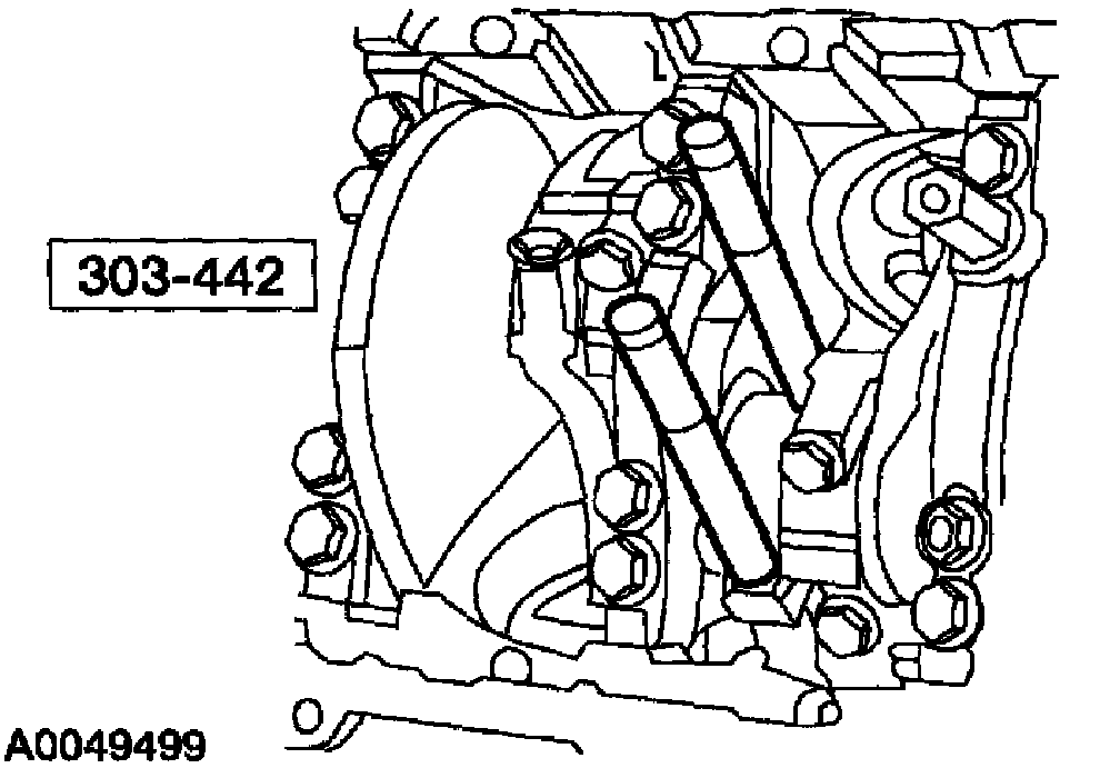 NOTE: The number one piston is at Top Dead Center (TDC) when the stud on the engine block fits into the slot in the handle of the special tool.