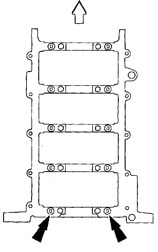 12. Install the vertical main bearing cap fasteners and tighten in the sequence shown.